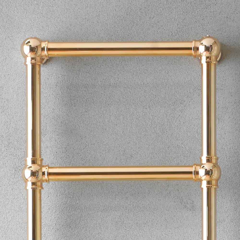 Gold hydraulic towel warmer radiator for the bathroom, modular design made in Italy.