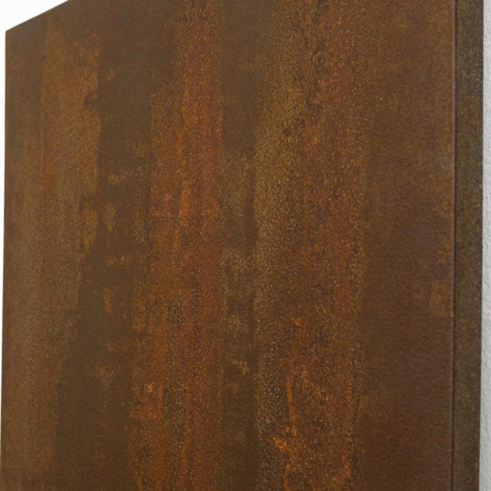 realization of the corten effect begins with the drafting of a pigmented paint rich in ferrous aggregates which initiates the transformation of the surface thanks to the nebulization of a contrast substance to activate the pigment reaction.