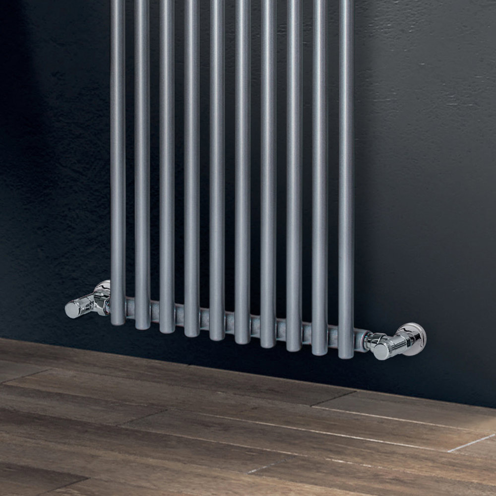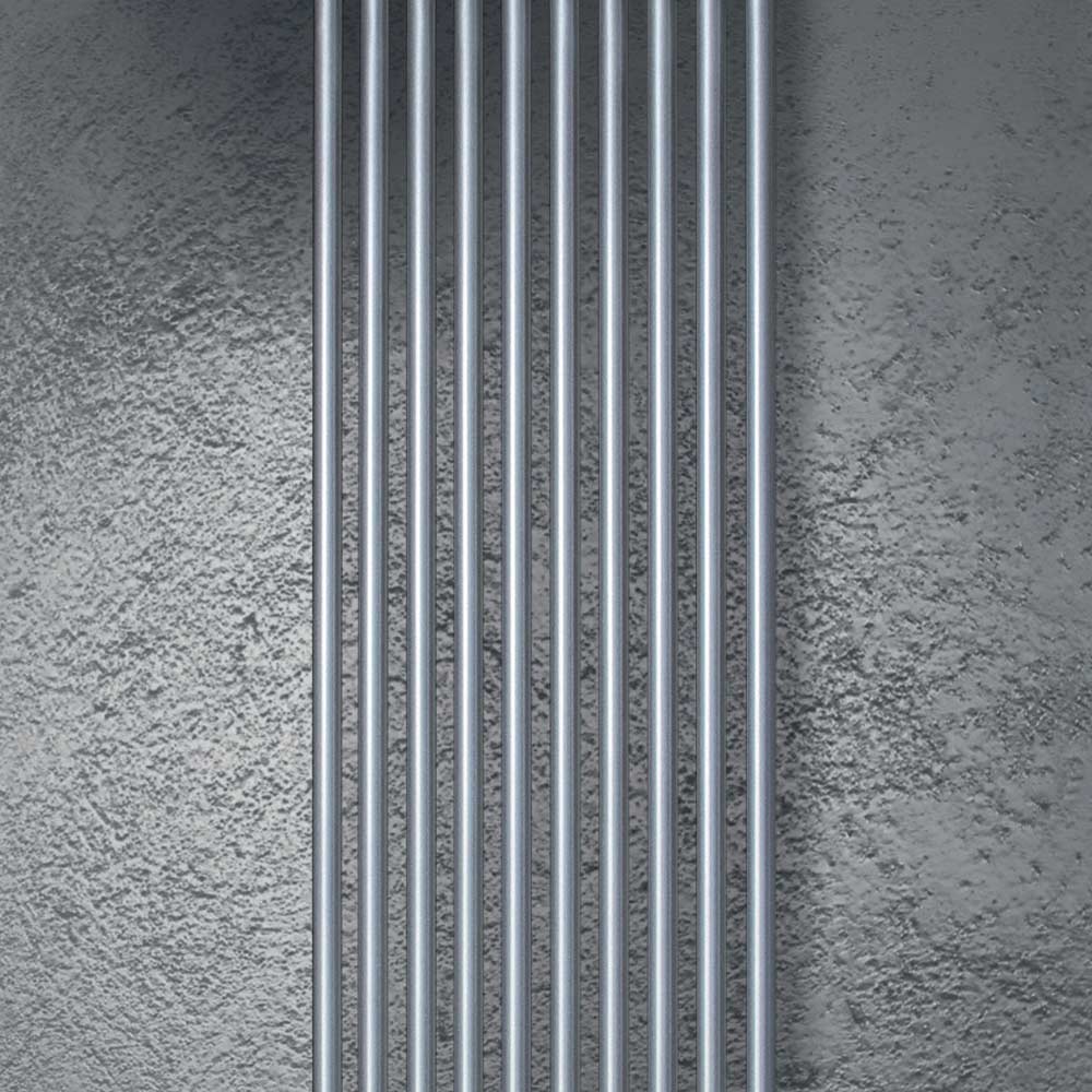 Hydraulic radiator in carbon steel with SATS finish consisting of a series of vertical elements with a diameter of 2.5 cm welded onto horizontal manifolds with a diameter of 3.5 cm, entirely made in Italy with wall fixing kit, vent valve and blind cap included . This product combines technology and formal presence, becoming a true design object, a source of well-being and aesthetic pleasure. It is much more than a simple heat source; it is a furnishing element capable of personalising and completing spaces. Every stage of production is carried out in a factory near Treviso, just a few kilometres from Venice, where quality is the constant and constant goal. Quality is synonymous with extreme attention to detail and the selection of the most reliable materials. This is how this radiator, pure design and functionality at its finest, was born.