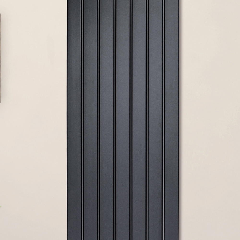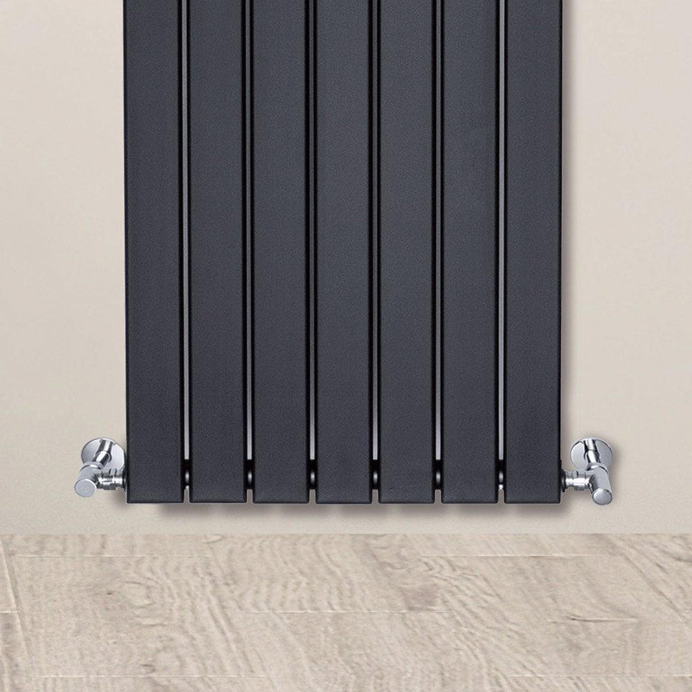 Hydraulic radiator in carbon steel with jet black finish consisting of a series of flat vertical elements measuring 7.1 cm welded onto horizontal manifolds with a diameter of 3.5 cm, entirely made in Italy with wall fixing kit, vent valve and blind cap included . Quality, innovation, and excellence are at the heart of this product's production process, combined with the fundamental character of Italian craftsmanship . The goal is to provide solutions that satisfy the needs and desires of increasingly discerning and demanding users. The radiator combines technology and formal presence to become a true design object and a source of happiness and aesthetic pleasure.