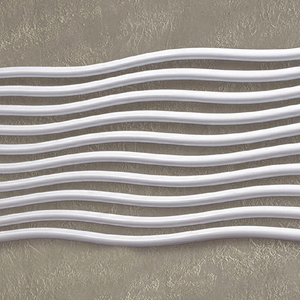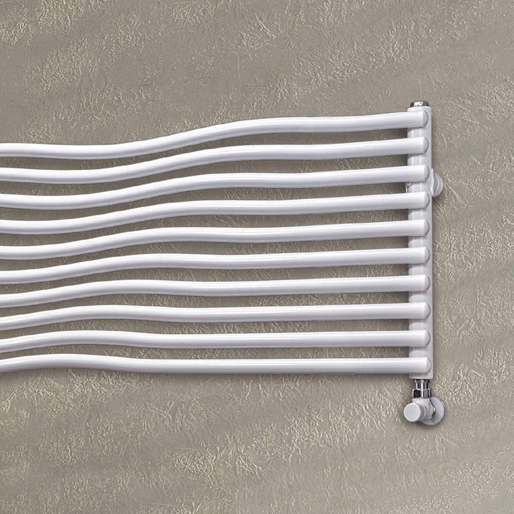 Hydraulic radiator in carbon steel with a pure white finish consisting of a series of curved horizontal elements with a diameter of 2.2 cm welded onto vertical manifolds with a diameter of 3.5 cm, entirely made in Italy with a wall fixing kit, vent valve and blind cap included . To create this piece , cutting-edge technologies and all the quality of Made in Italy craftsmanship were combined to create a functional, designer product that is not only aesthetically pleasing but also usable and efficient . The choice of highly reliable and durable materials guarantees a piece of furniture that meets the needs and desires of an increasingly attentive and demanding user.