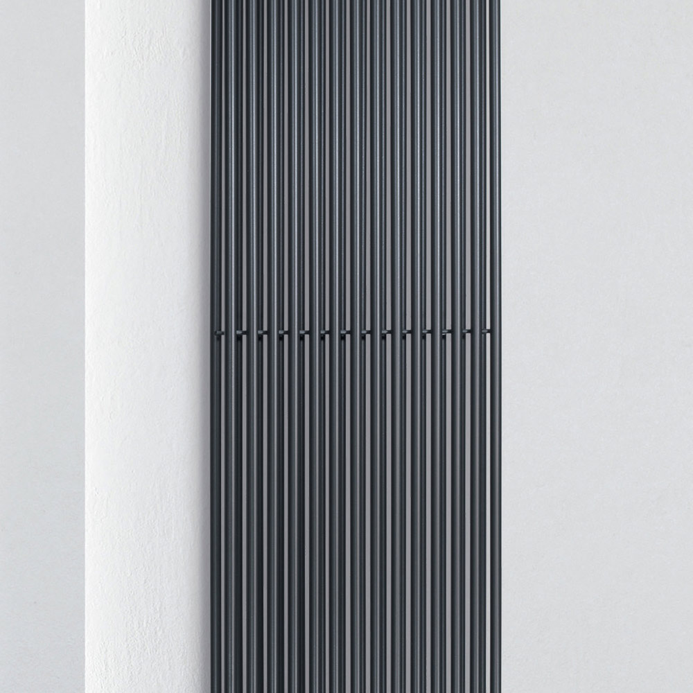 Hydraulic radiator in carbon steel with GRMS finish consisting of a double series of vertical elements with a diameter of 1.6 cm welded onto horizontal manifolds with a diameter of 3.5 cm, entirely made in Italy with wall fixing kit, vent valve and blind cap included . Every stage of production is carried out in a factory near Treviso, just a few kilometers from Venice, where quality is the constant and constant goal. Quality is synonymous with extreme attention to detail and the selection of the most reliable materials . This is how this radiator, pure design and functionality at its finest, was born.