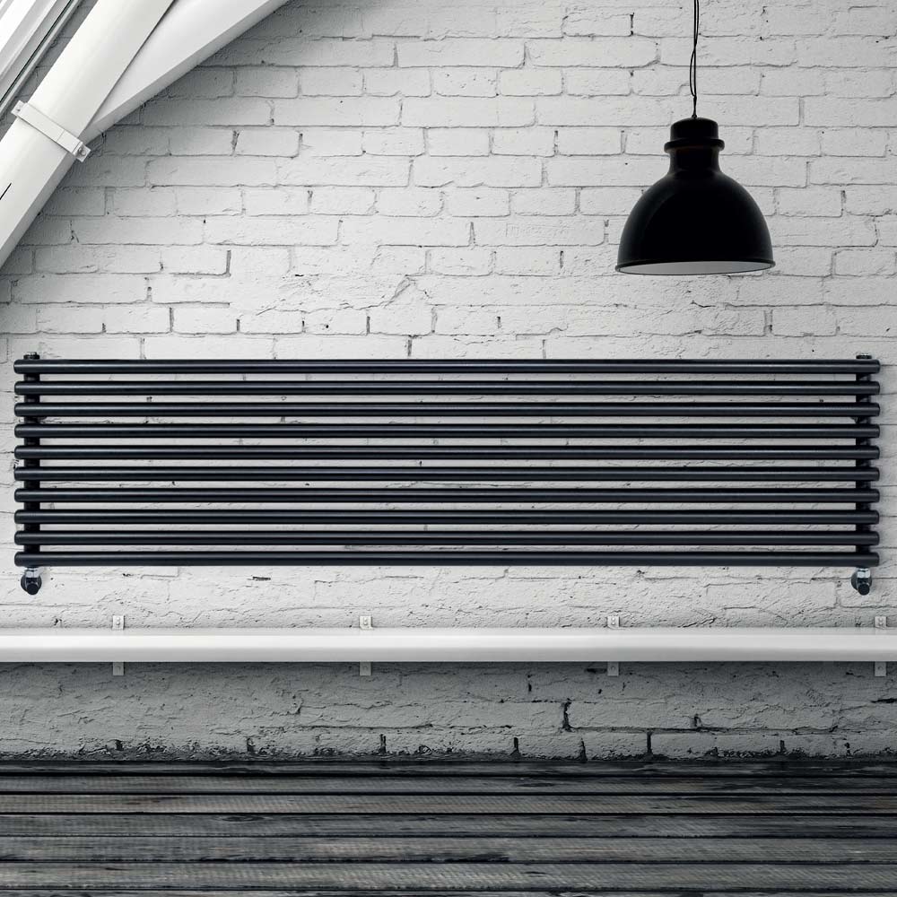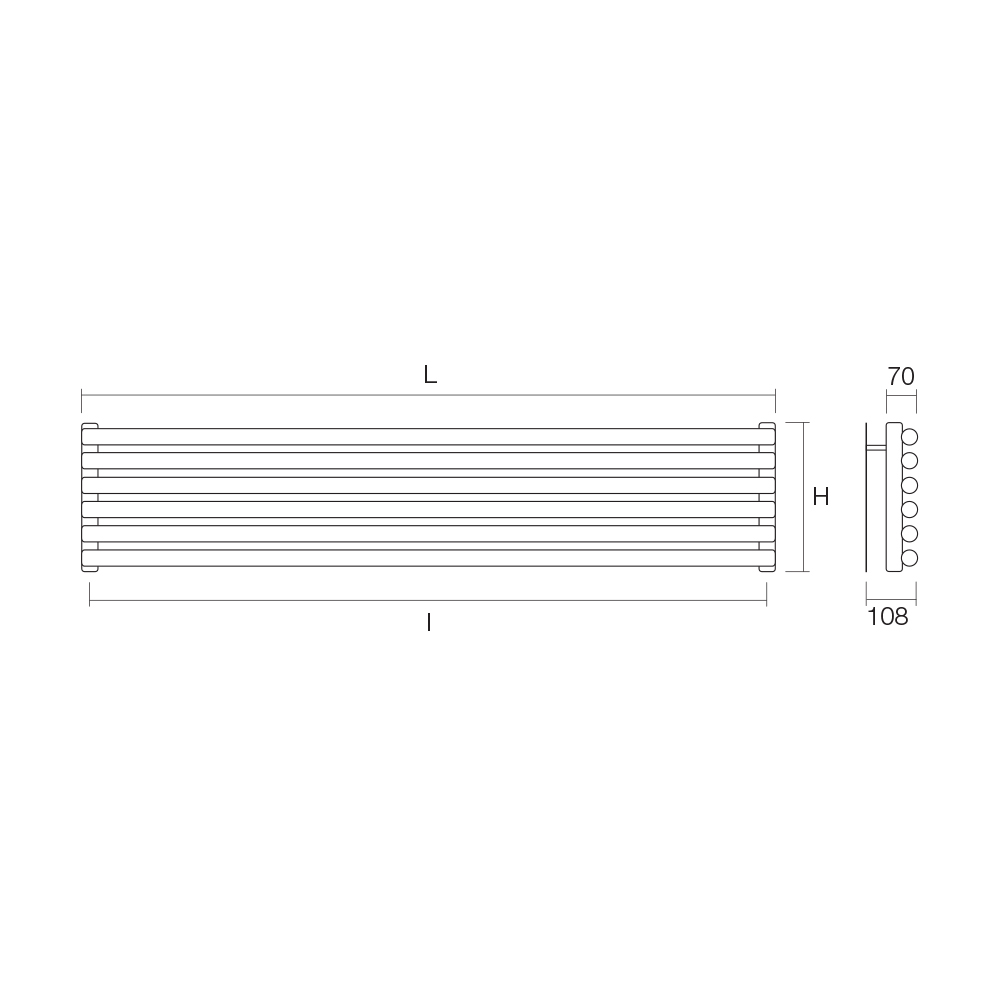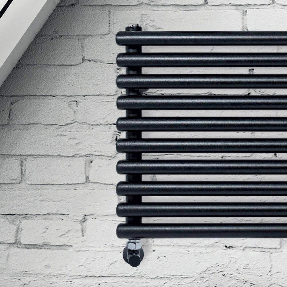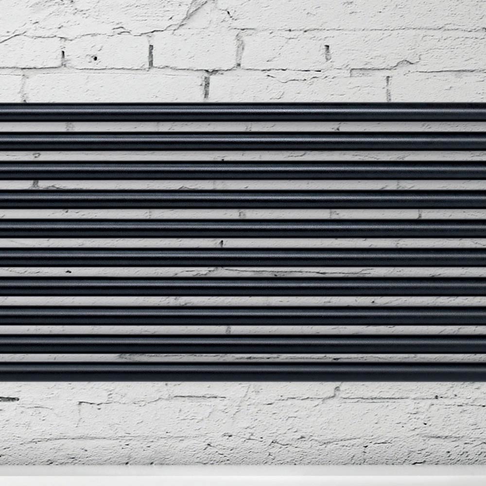 Hydraulic radiator in carbon steel with NEGS finish consisting of a series of horizontal elements with a diameter of 3.5 cm welded onto vertical manifolds with a diameter of 3.5 cm, entirely made in Italy with wall fixing kit, vent valve and blind cap included . The product is not just a source of color, but a true furnishing element capable of personalizing and completing the space. The aim is to ensure a fusion of design and functionality , creating a product that is not only aesthetically pleasing, but also easy to use and efficient.