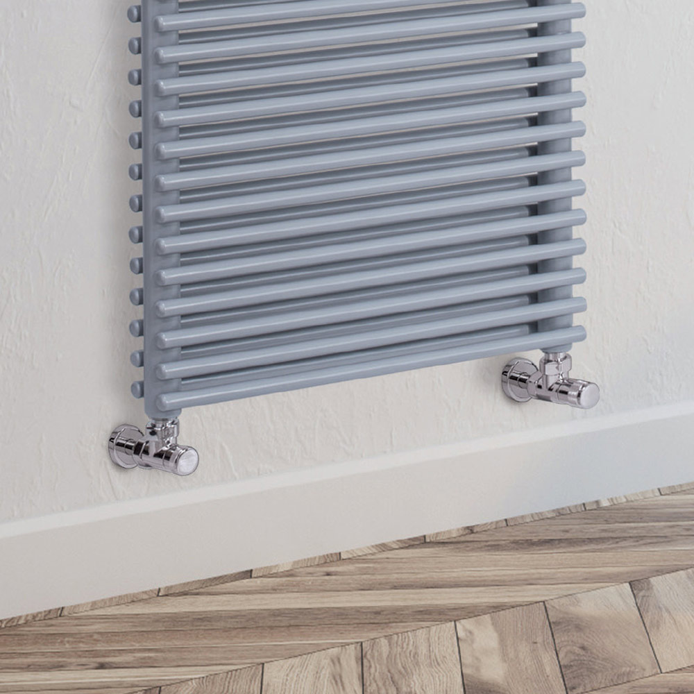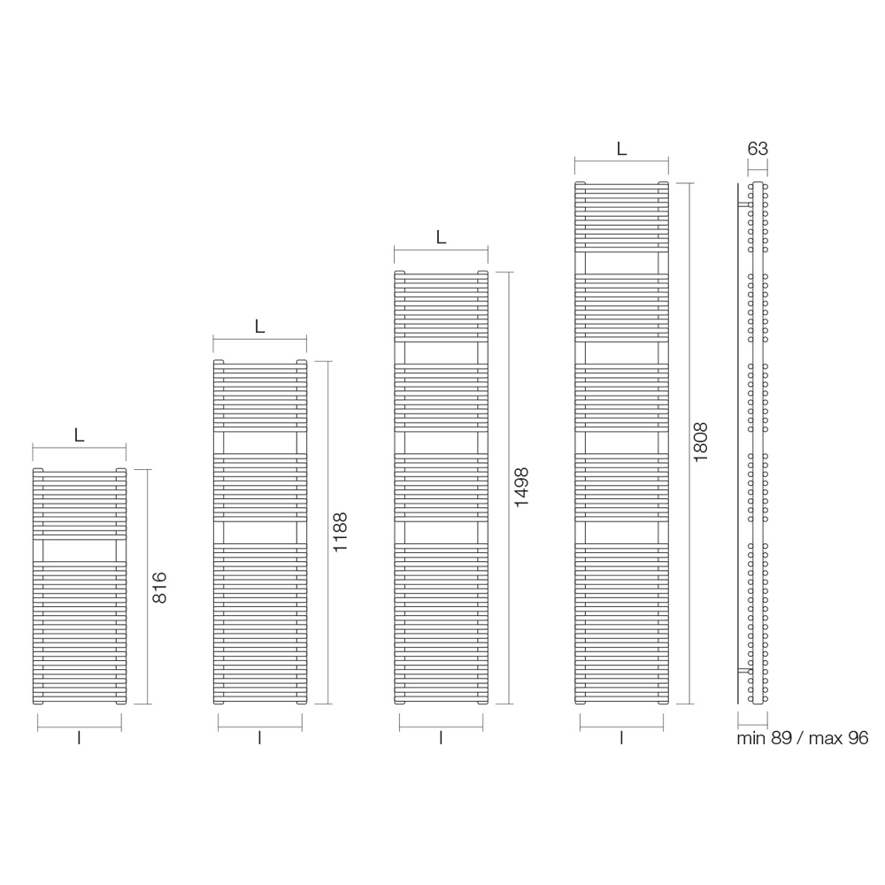 Hydraulic towel warmer in carbon steel with a bright aluminium finish consisting of a double series of horizontal elements with a diameter of 1.6 cm welded onto vertical manifolds with a diameter of 3.5 cm, entirely made in Italy with wall fixing kit, vent valve and blind cap included . This element combines technology and formal presence , becoming a true design object , a source of well-being and aesthetic pleasure capable of personalising and completing the space. However, it remains essential that design and functionality balance each other to create a product that is not only beautiful to look at but also usable and efficient.