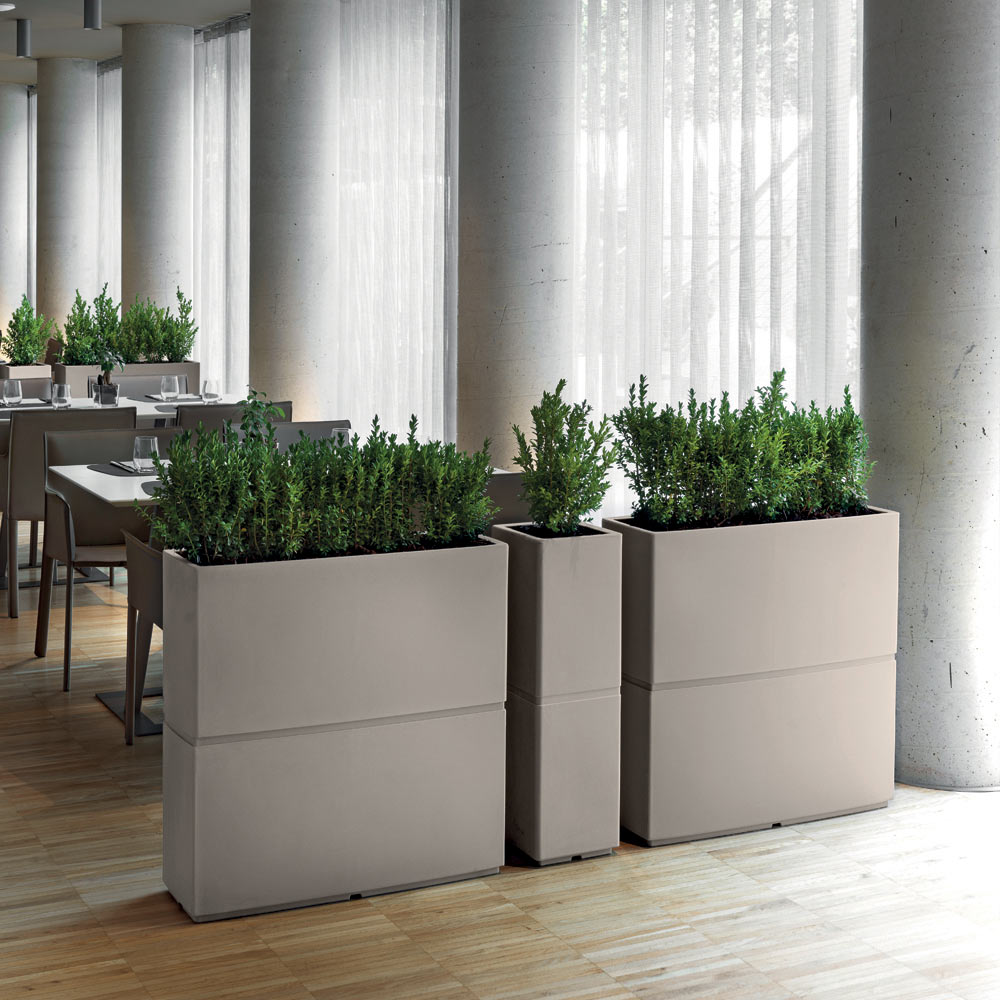 2 different shapes to be used separately or combined together to create original compositions with a contemporary design. This piece of furniture represents the perfect solution to elegantly complete indoor and outdoor living spaces.