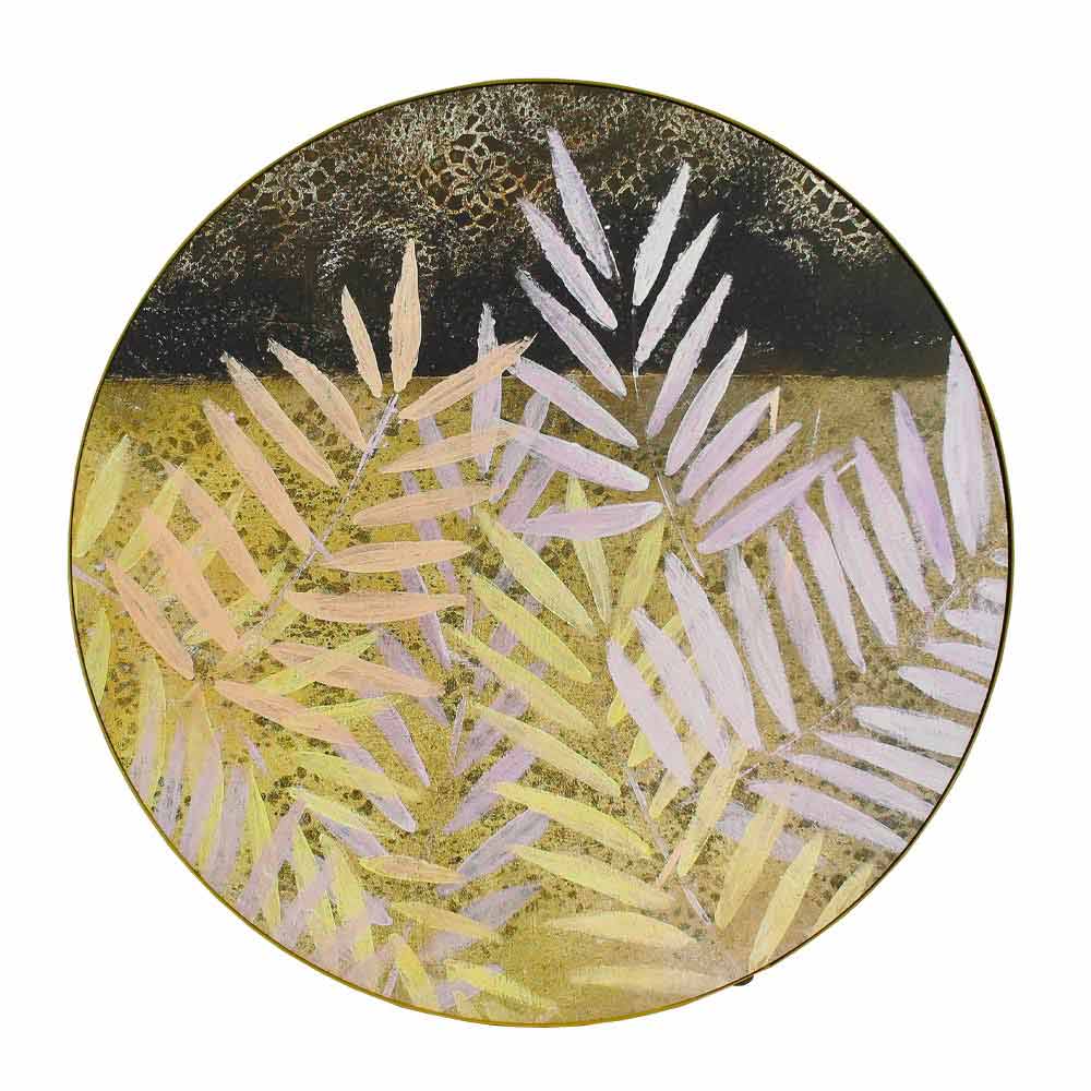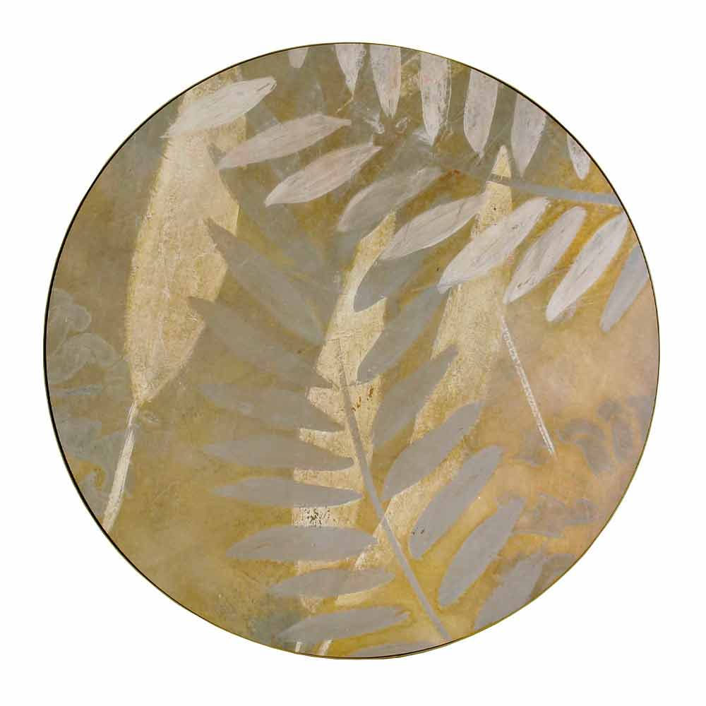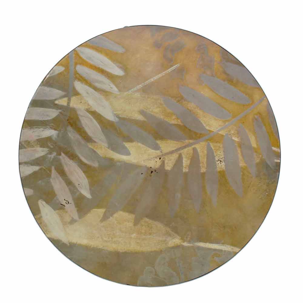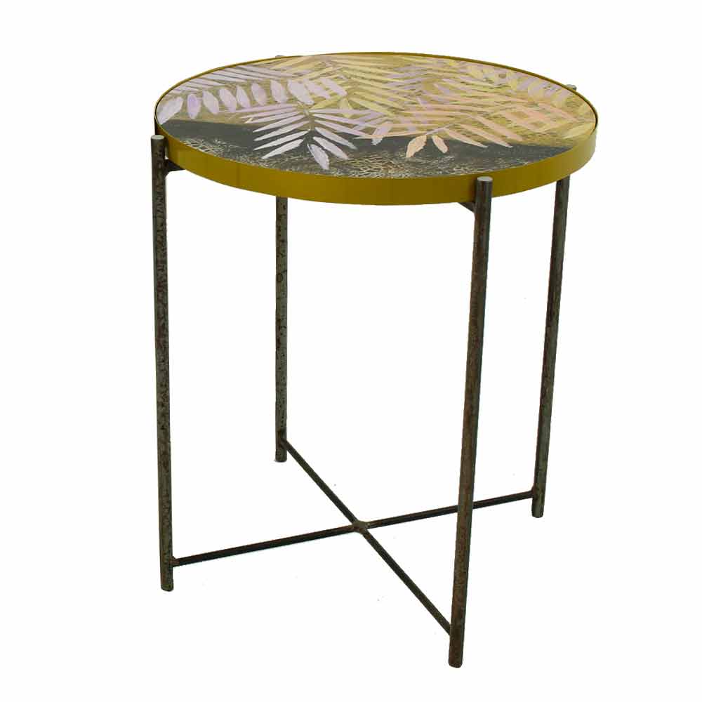 Coffee table for indoors or outdoors with metal base and top decorated and resin-coated Made in Italy.