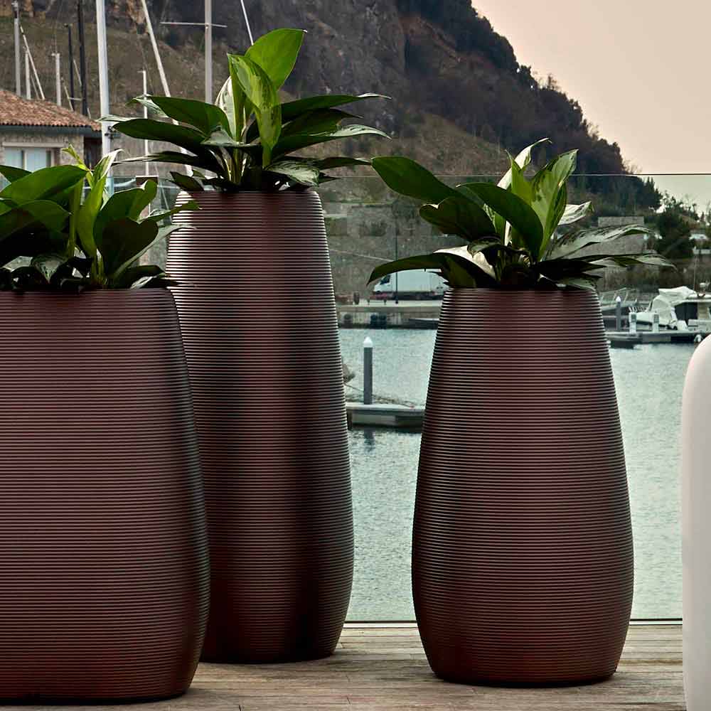 Modern interior or exterior vase in dark pearl plastic available in 3 sizes, made in Italy, 2 pieces.