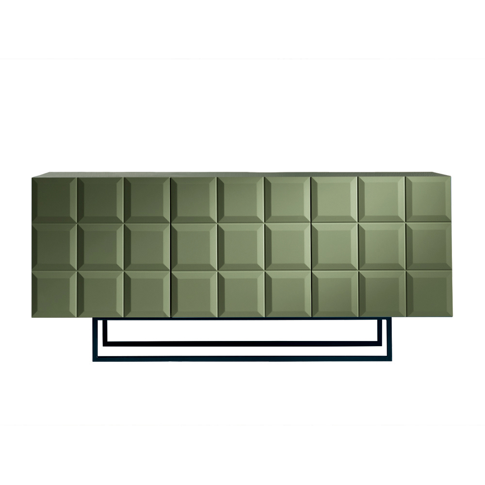 Made in Italy designer sideboard with embossed geometric doors and metal base
