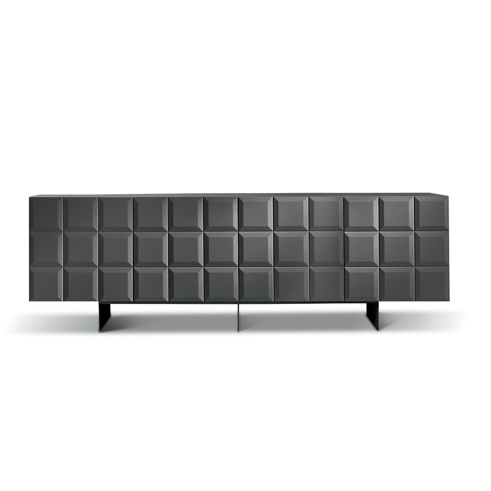 Made in Italy designer sideboard with embossed geometric doors and metal base