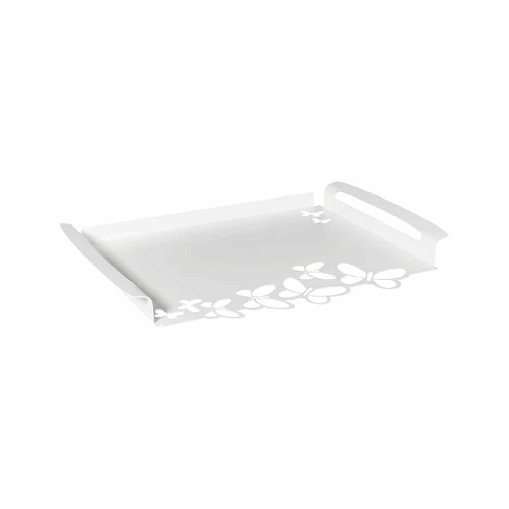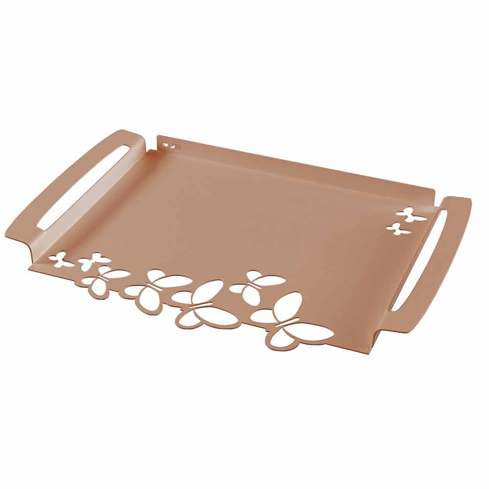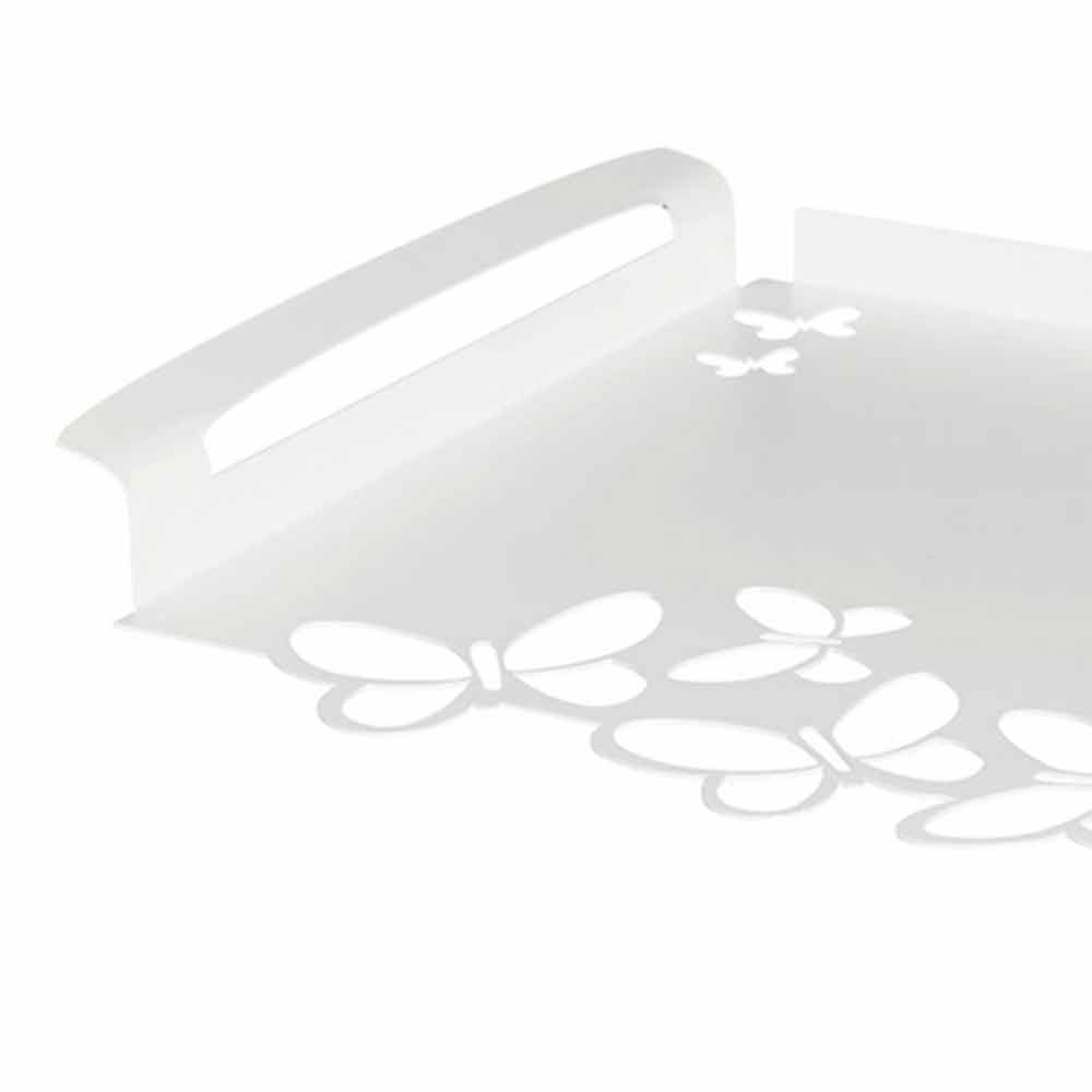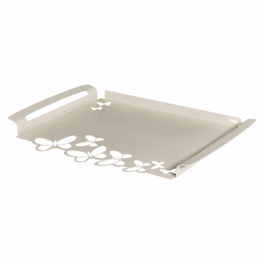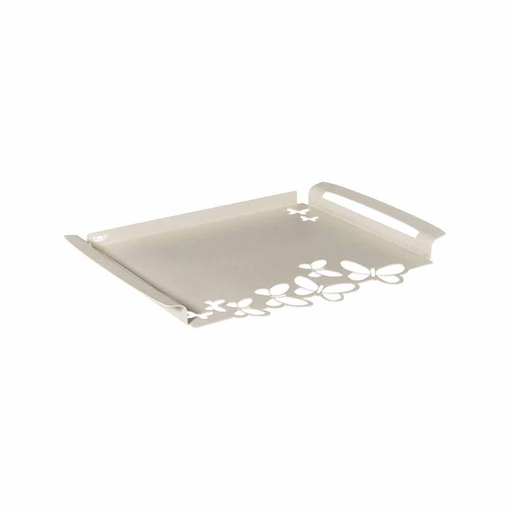 Modern rectangular serving tray in white, beige or ivory iron handcrafted in Italy.