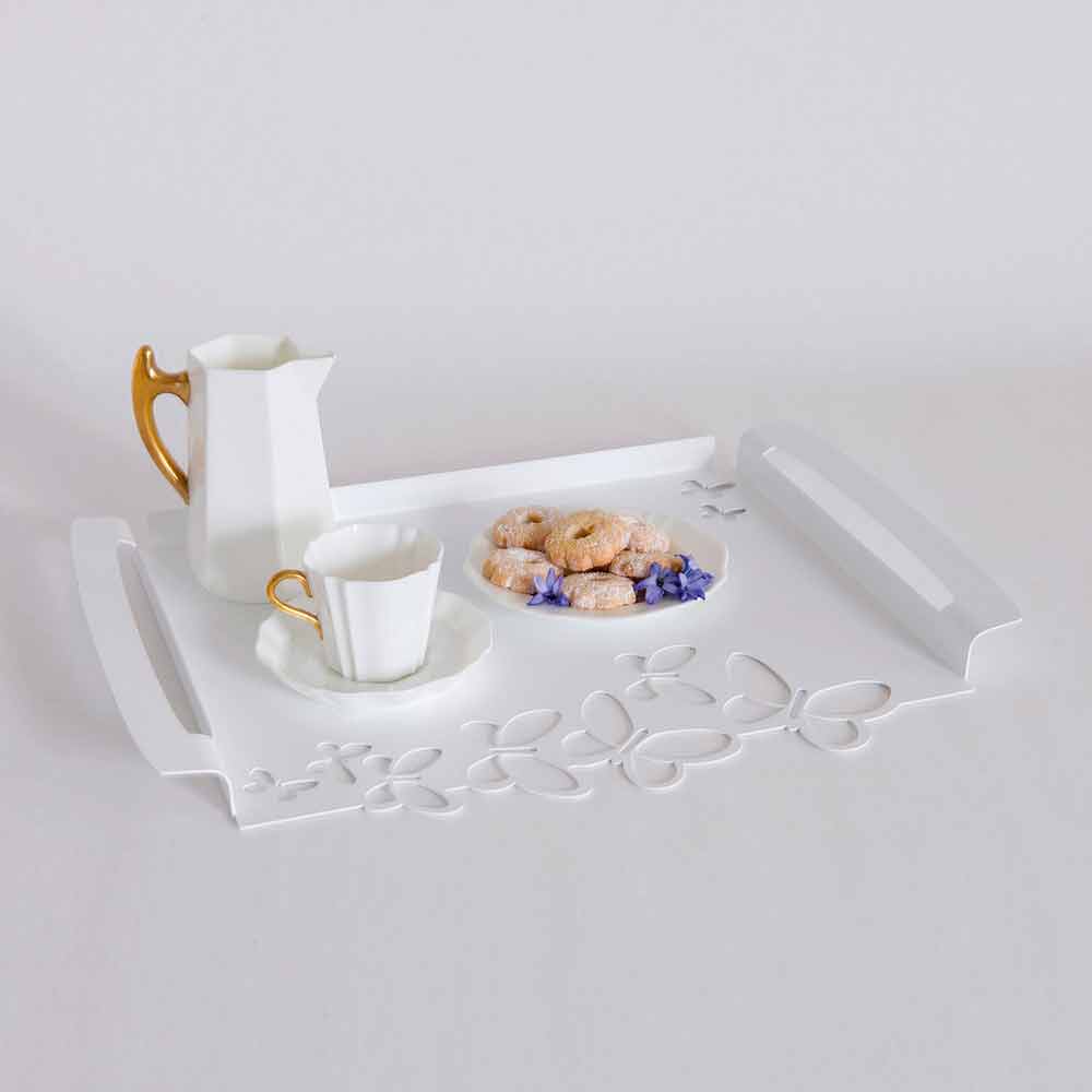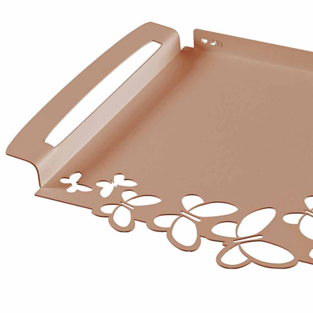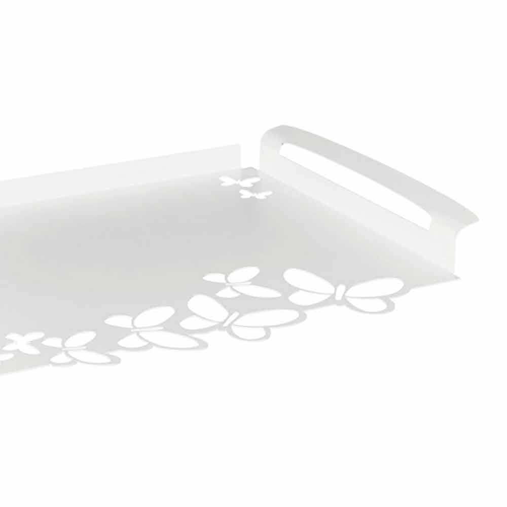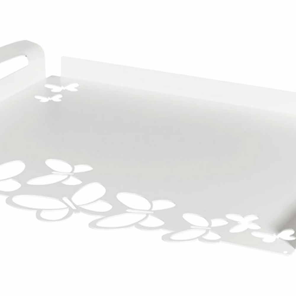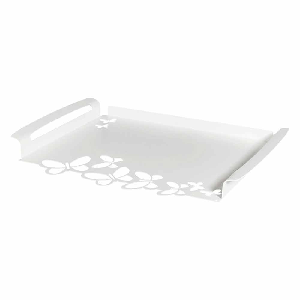 Modern rectangular serving tray in white, beige or ivory iron handcrafted in Italy.