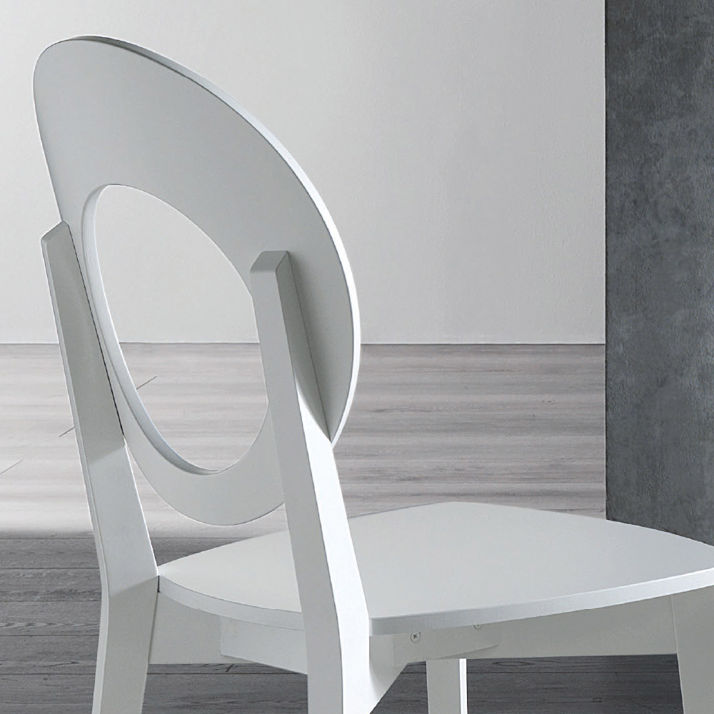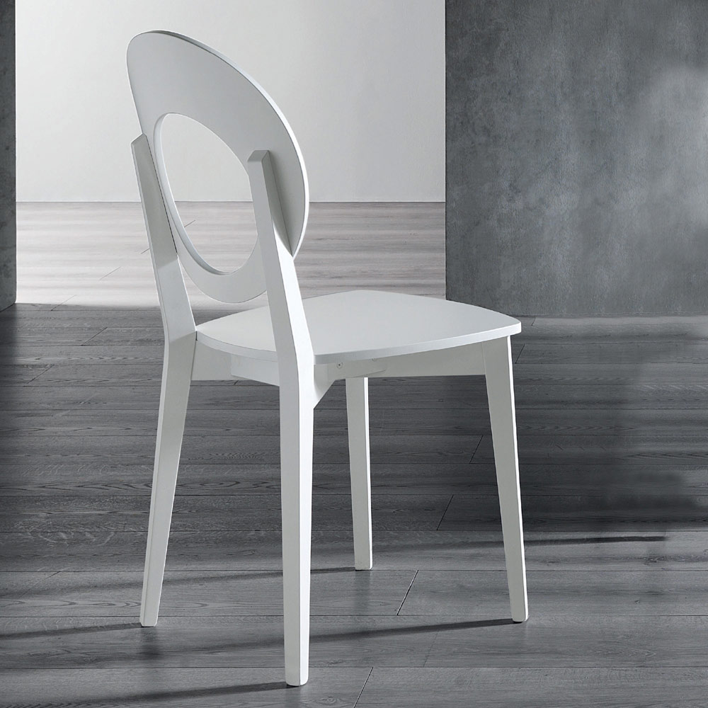 The kitchen chair is made with a solid beech wood structure available in various finishes with a modern and comfortable structure. The harmonious design is characterized by the circular backrest with a hole that gives visual lightness, creating an extremely versatile mood. The chair thus adapts to different environments, with an essential elegance.