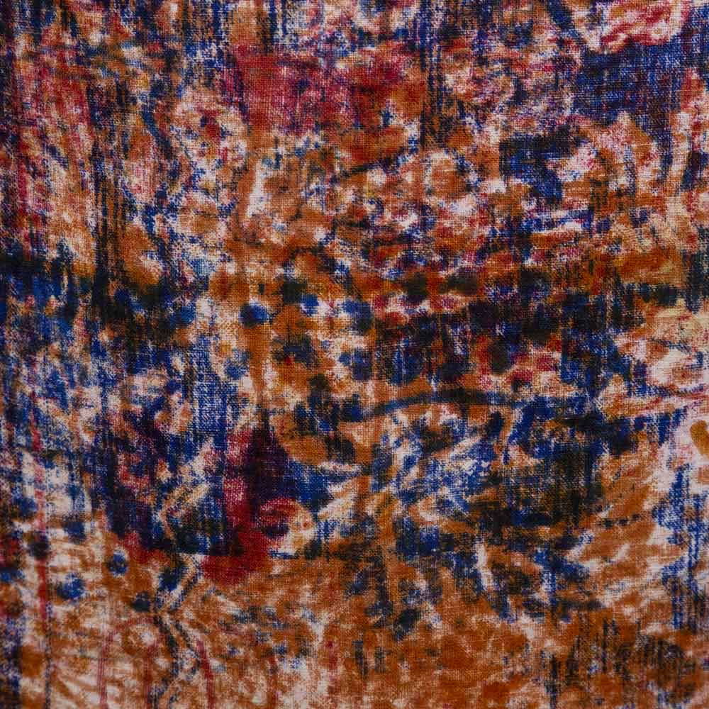 - Hand print: This phase lasts for months. The fabric is placed on the workbench below the various products that in months and months of work will alternate and be printed. The various colors and designs will be transferred "spontaneously" to this fabric due to the pressure of the wooden mold, and will overlap. The end result will be an explosion of unpredictable and unrepeatable colors and shades.