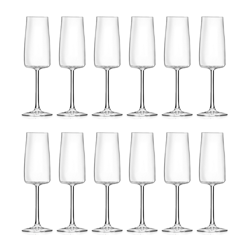 Sparkling wine or champagne flute glasses in minimal eco crystal, 12 pieces made in Italy.
