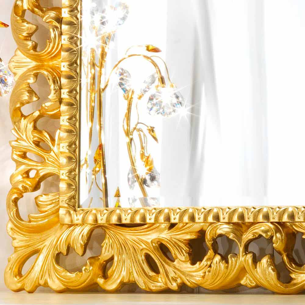 The Ives mirror is characterized by a craftsmanship carried out using quality materials and using the experience of skilled Italian artisans. The frame is made of wood decorated with carvings. 4mm thick beveled crystal mirror. Made in Italy. To hang both vertically and horizontally.