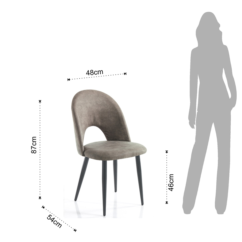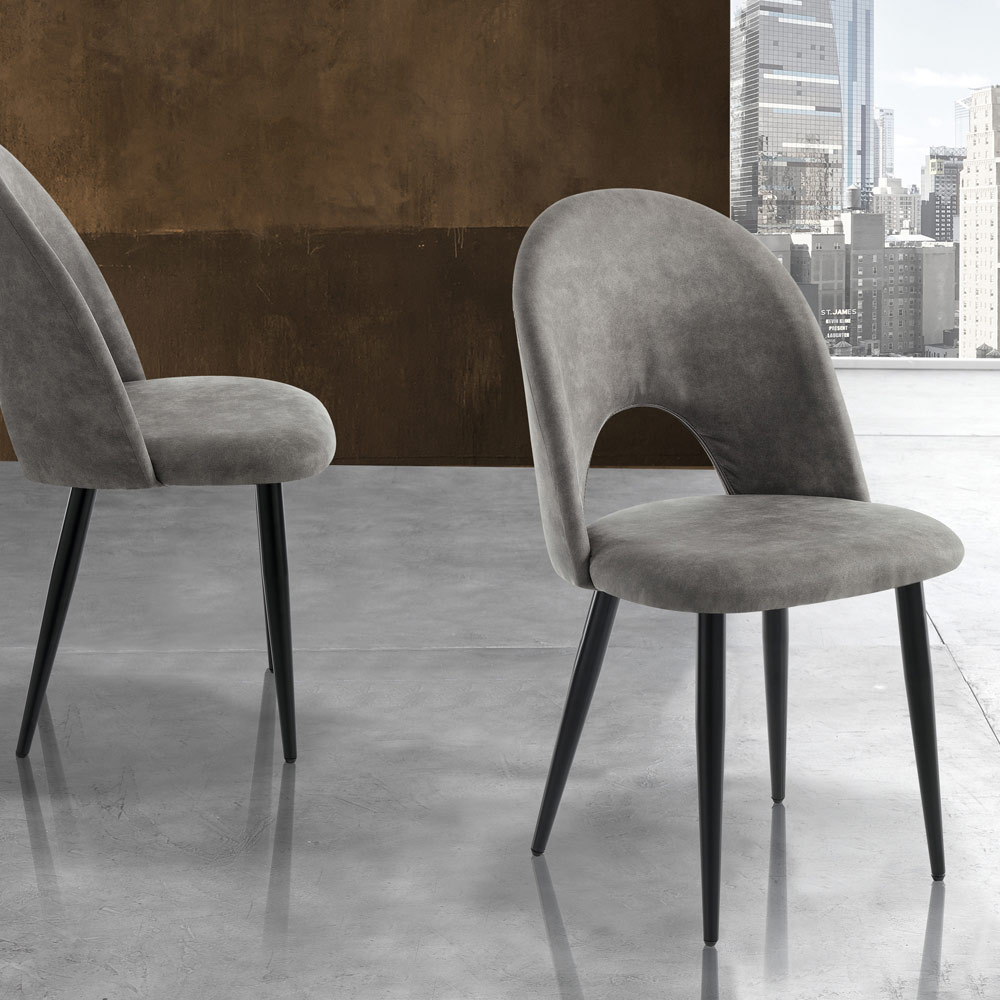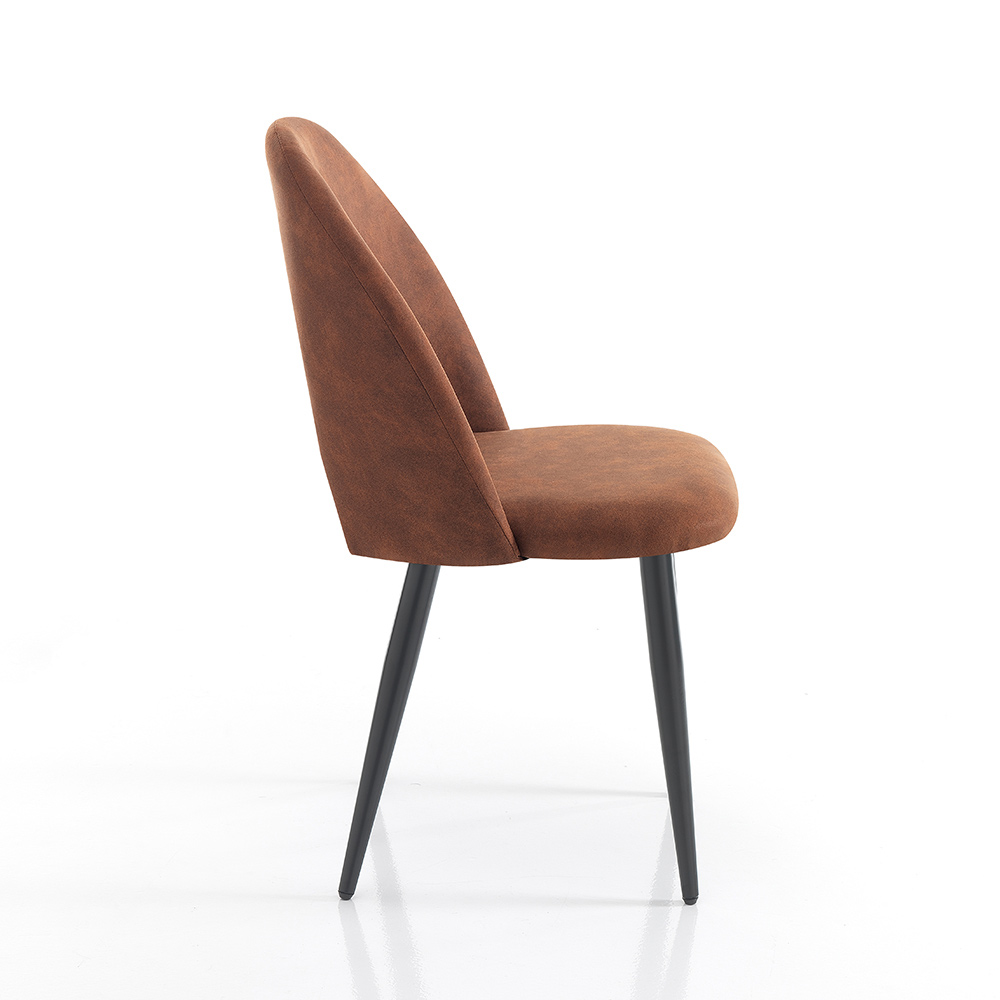 Kitchen chair with padded seat covered in aged effect synthetic leather e Ā structure made of matt black painted metal . An essential design but with a strong visual impact thanks to the wonderful effect created by the coating that gives the product all its elegant and refined personality . The perfect combination with the matte finish of the legs gives life to a one-of-a-kind chair, perfect for completing any furnishing situation in domestic spaces such as kitchens or dining rooms but also in contract spaces such as bars and restaurants.