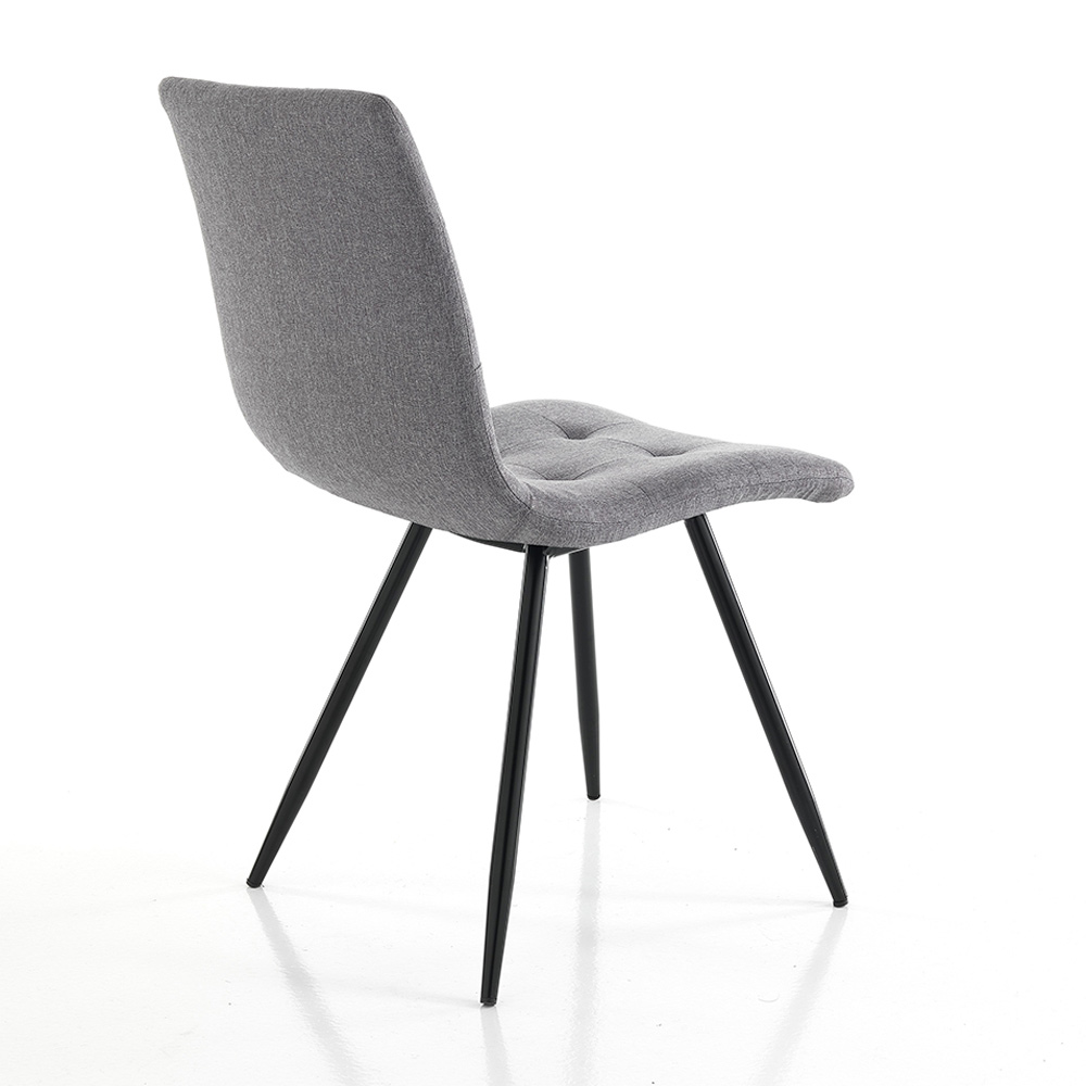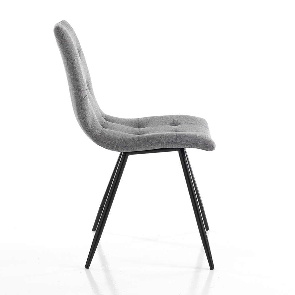 Kitchen or dining room chair with legs made of matt black painted metal and padded seat covered in gray fabric . It combines perfectly with all styles of modern furniture, from the most minimal to the most refined, giving elegance to the room without taking your eyes off the dining table which represents the focal point of the environment but creating together with it a wonderful harmony of styles for a original result, refined and with a strong modern personality .