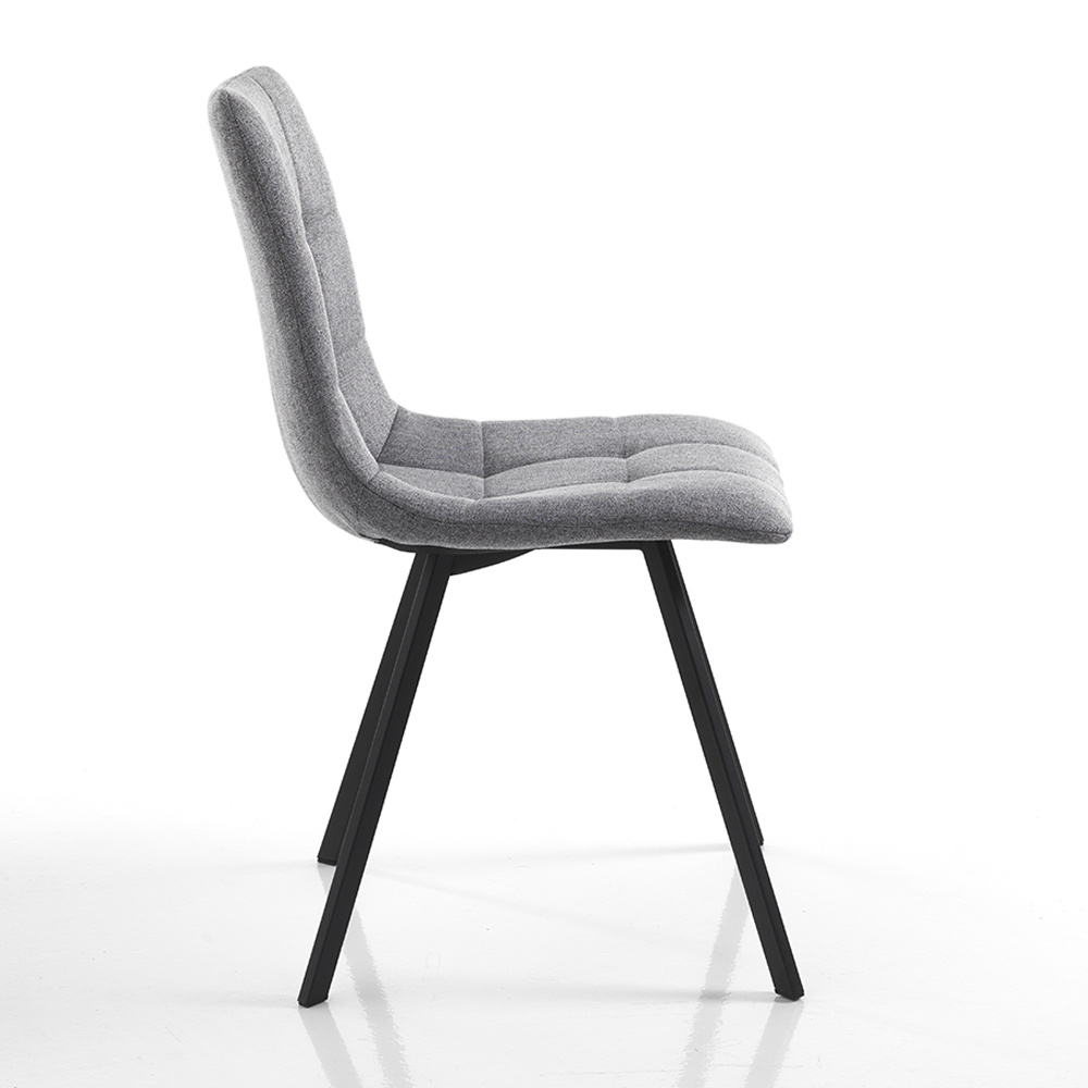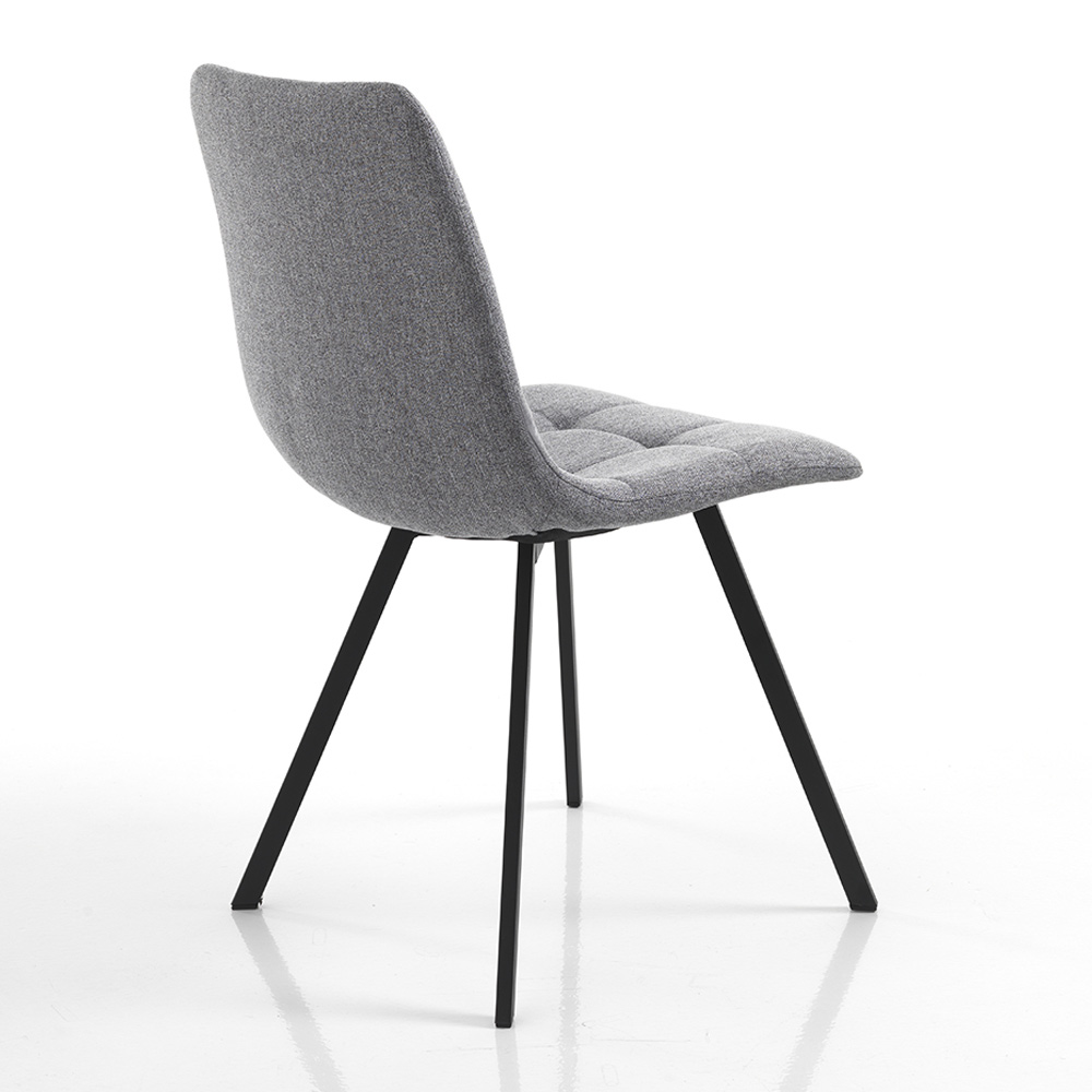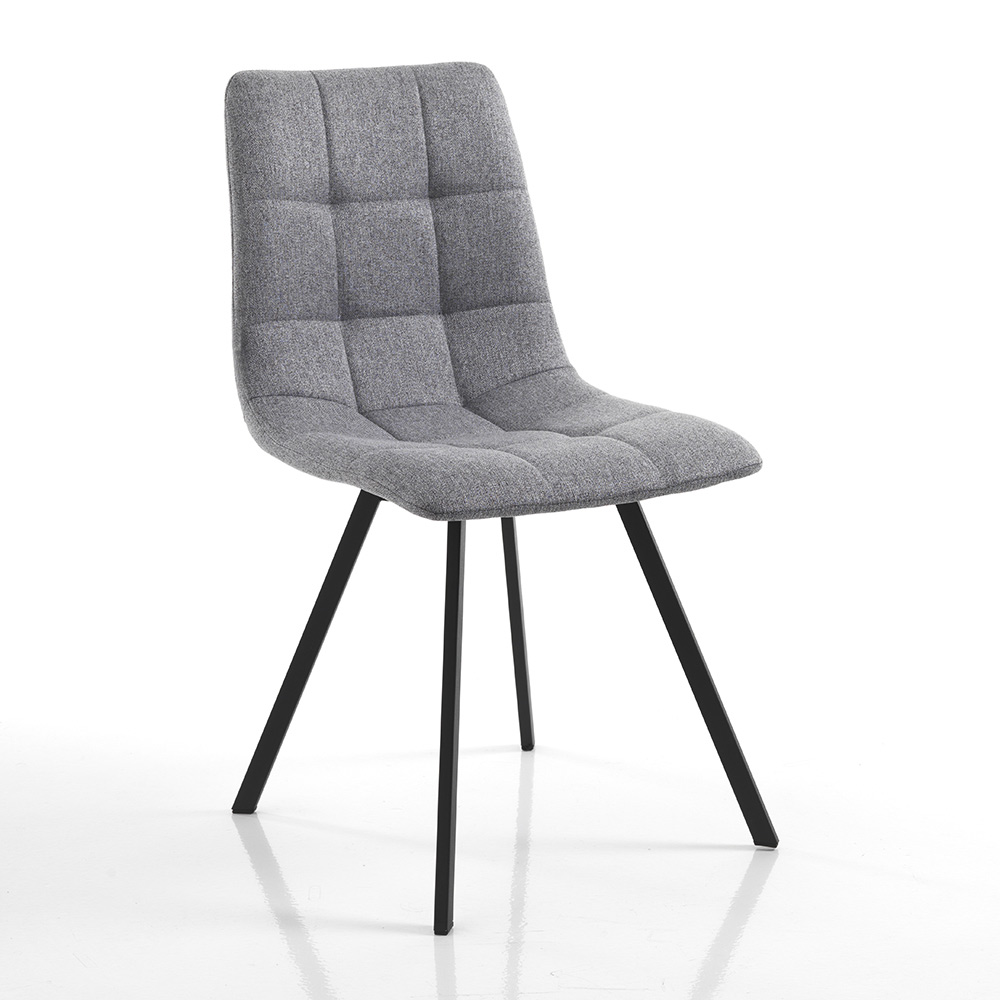 Kitchen chair with structure made of matt black painted steel and seat entirely covered in gray fabric . Ideal to be placed in the dining room and kitchen but also in contract spaces such as bars and restaurants thanks to the elegant and refined design and its versatility of use. The shapes that mark the figure together with the soft padding offer a particularly welcoming and comfortable seat to ensure wonderful moments dedicated to relaxation.