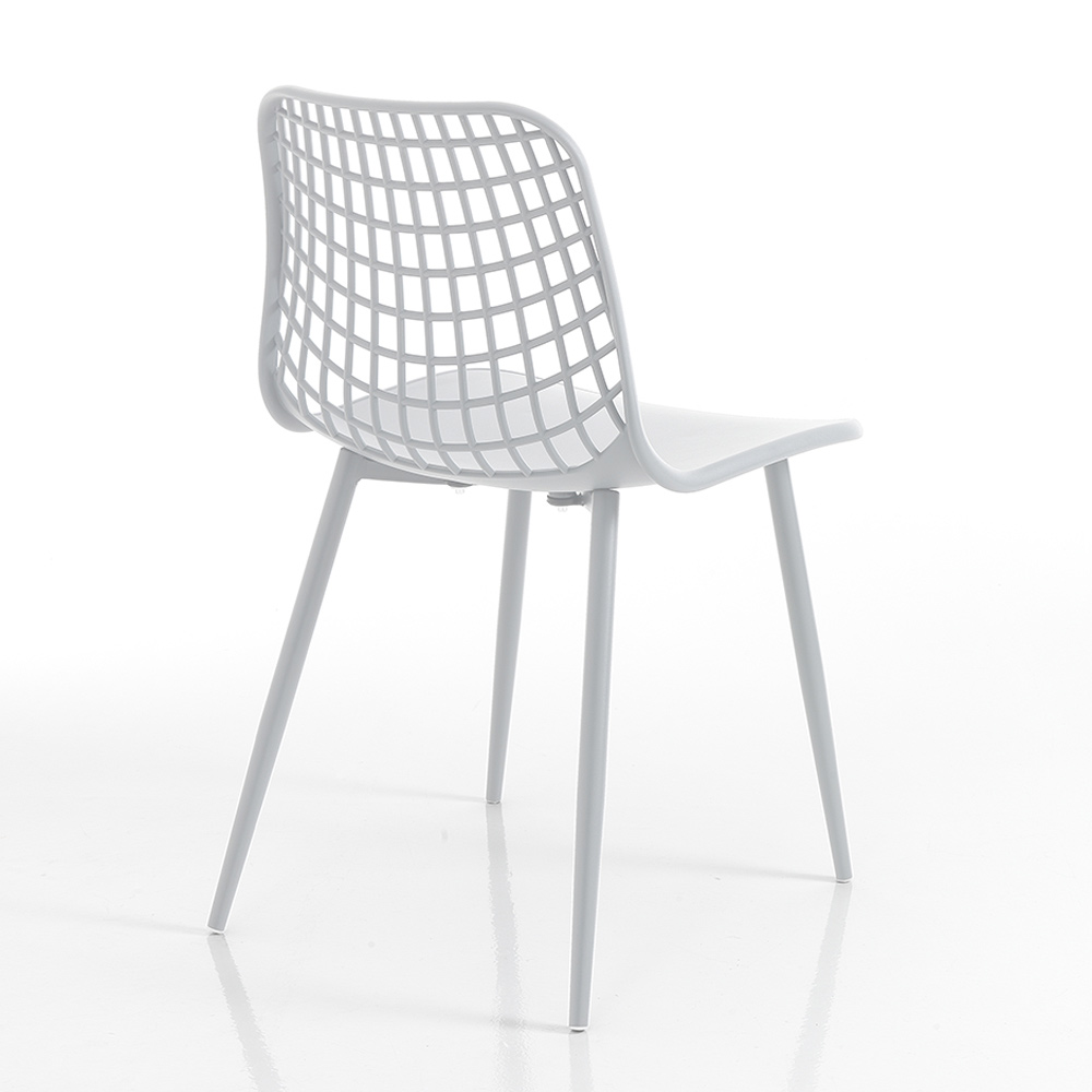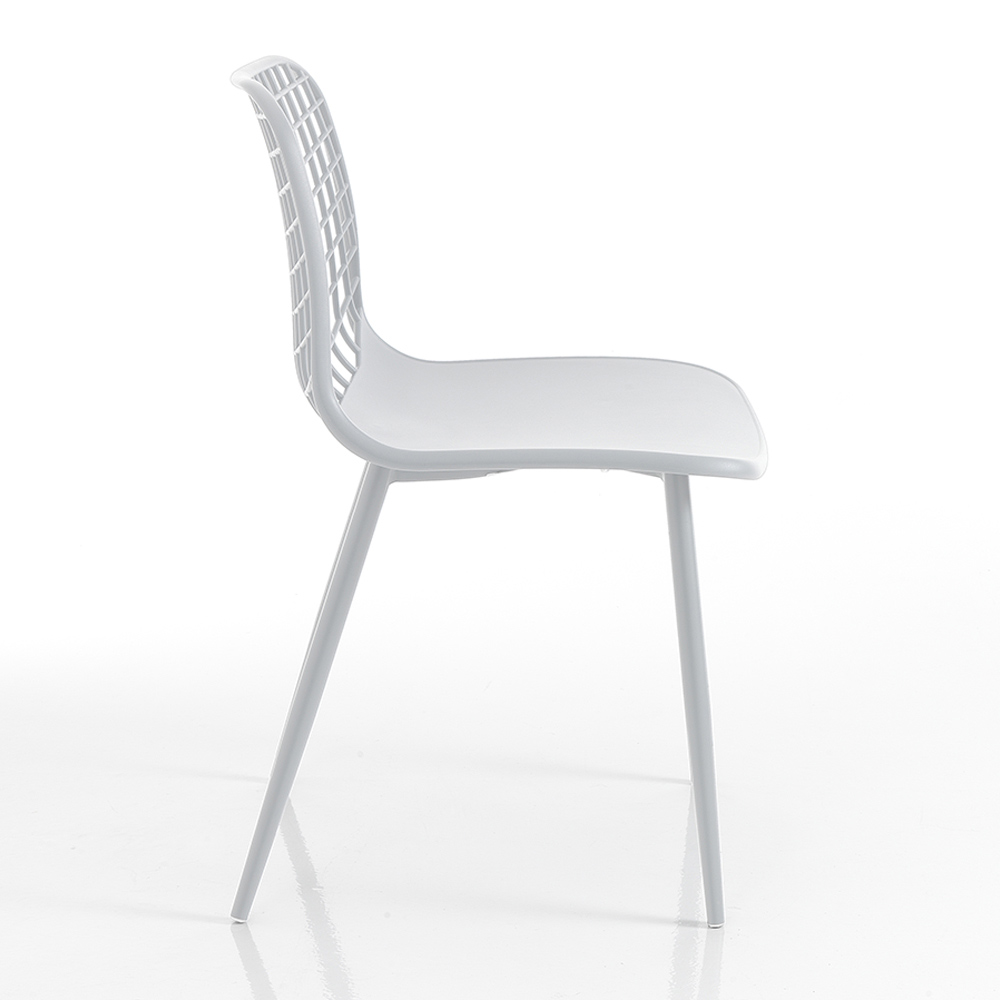 Kitchen chair in white polypropylene and painted steel, 4 pieces.