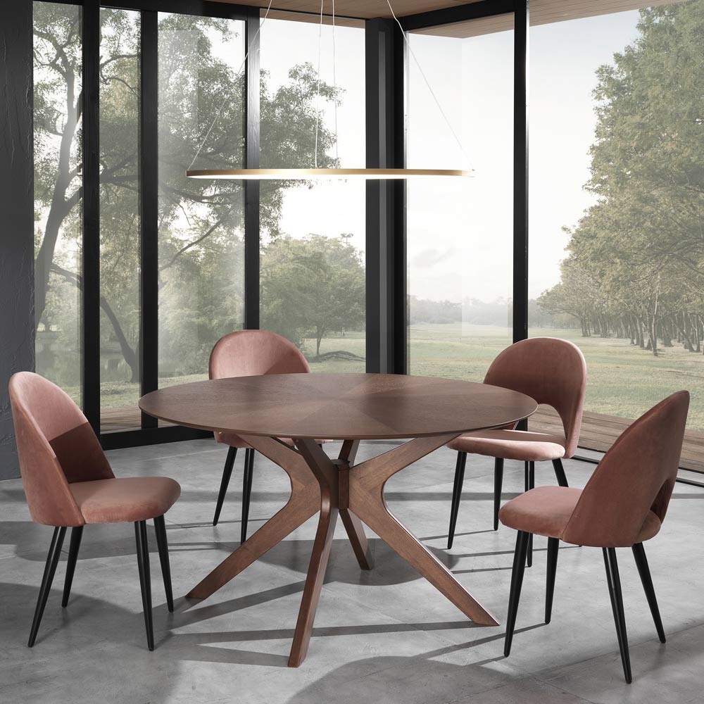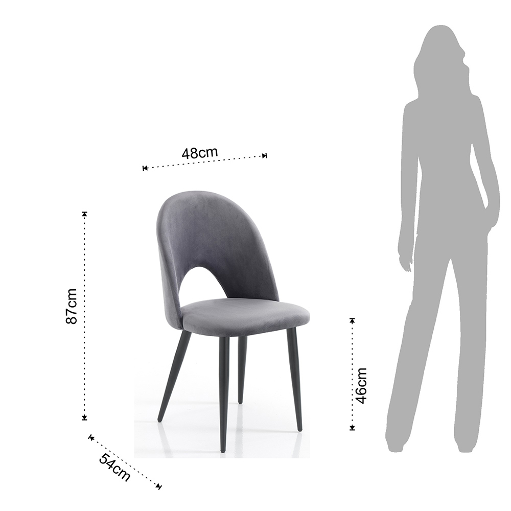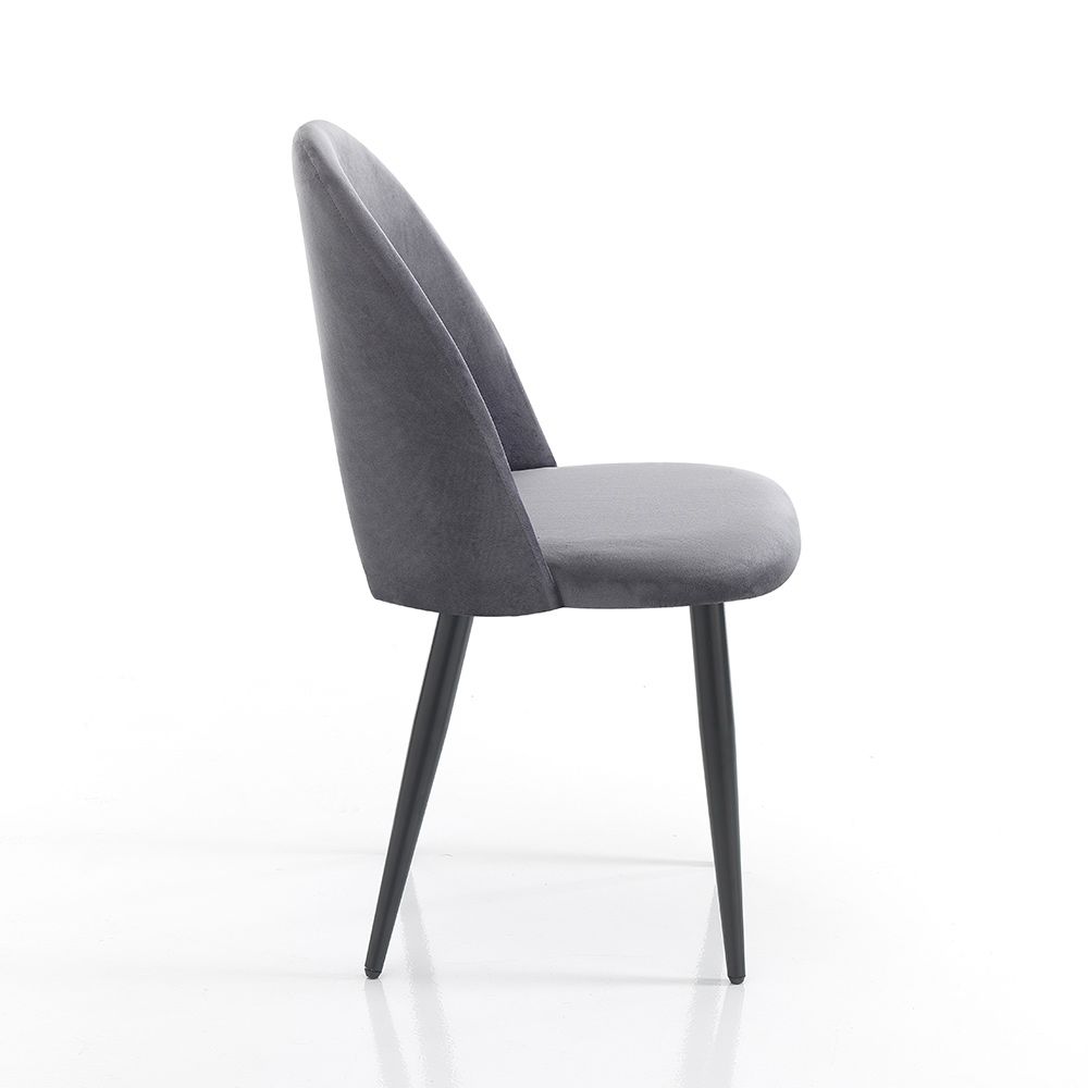 Kitchen chair with structure made of matt black painted metal and padded seat covered in velvet effect fabric . An essential design but with a strong visual impact thanks to the wonderful effect created by the coating that gives the product all its elegant and refined personality . The perfect combination with the matte finish of the legs gives life to a one-of-a-kind chair, perfect for completing any furnishing situation in domestic spaces such as kitchens or dining rooms but also in contract spaces such as bars and restaurants.