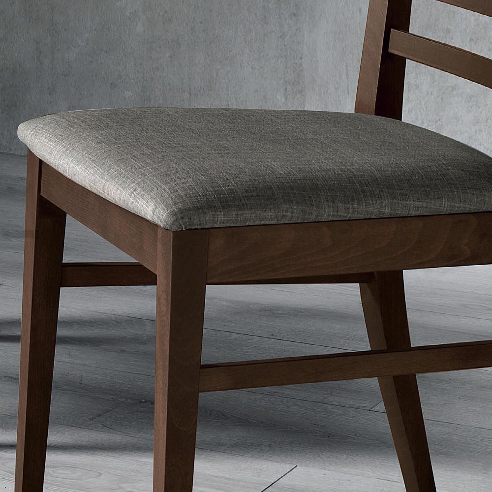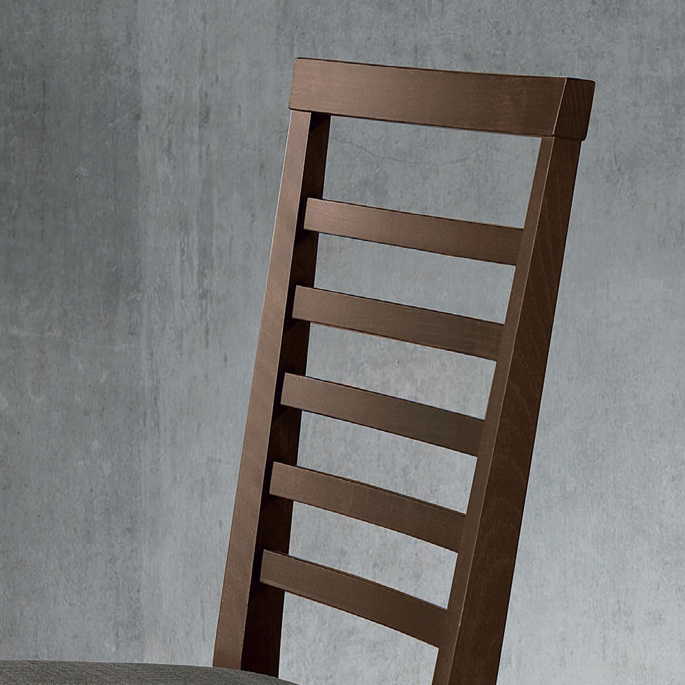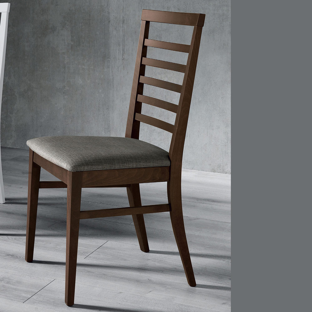 The kitchen chair is made in Italy with solid beech wood structure available in various finishes and fabric seat. Thanks to the comfortable and harmonious design it adapts to different environments for an essential elegance with a visual lightness and an extremely versatile mood.