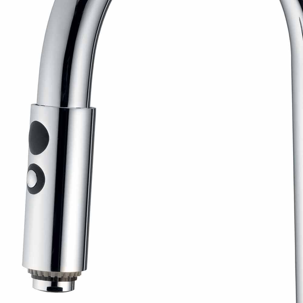 Made in Italy kitchen sink mixer made of chromed brass . Functionality and design come together in this wonderful article with a modern taste designed for a simple and practical use thanks to the presence of the adjustable spout with spring and the 2-jet extractable and adjustable hand shower. What makes it unique is the presence of a cartridge defined ES capable of supplying cold water when the lever is raised in the central position, avoiding the need for hot water from the boiler and thus allowing substantial energy savings.