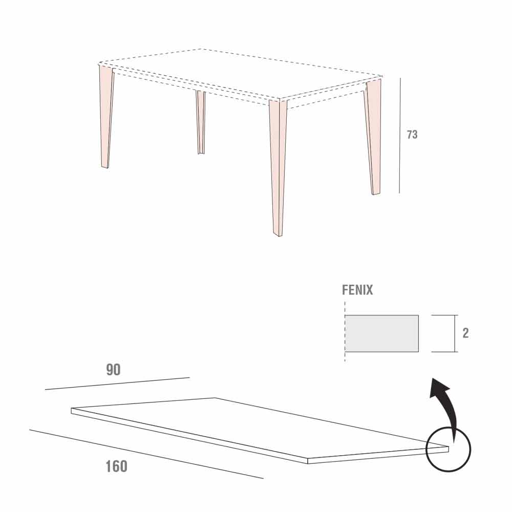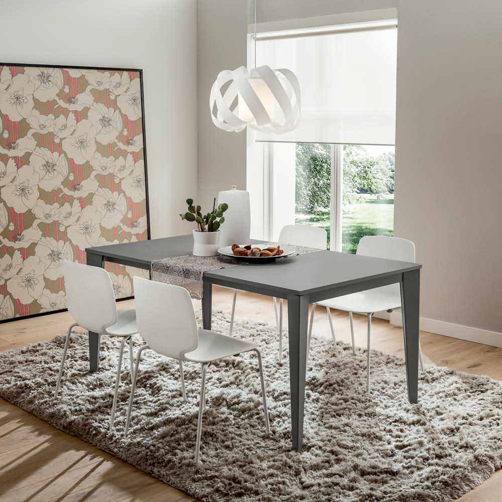 Kitchen table made through a 100% Made in Italy production with fenix top (thickness 20 mm) and epoxy powder lacquered metal structure in London gray finish. A design characterized by simple lines enriched by extremely elegant finishes that make it an ideal solution to complete your home environments with style and personality , obtaining functionality and an exclusive aesthetic in a single article. What enhances and underlines its elegance is the use of fenix, a material characterized by a treatment with new generation resins that offers a particularly resistant surface, pleasant to the touch and extremely opaque, thus optimizing the final result and giving life to a imposing and majestic design . The result is a solid and robust dining table capable of characterizing the surrounding environment thanks to its strong modern personality and its versatility .