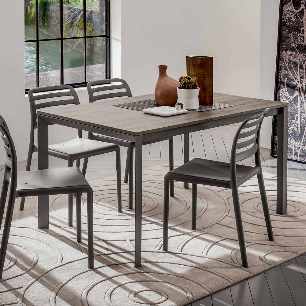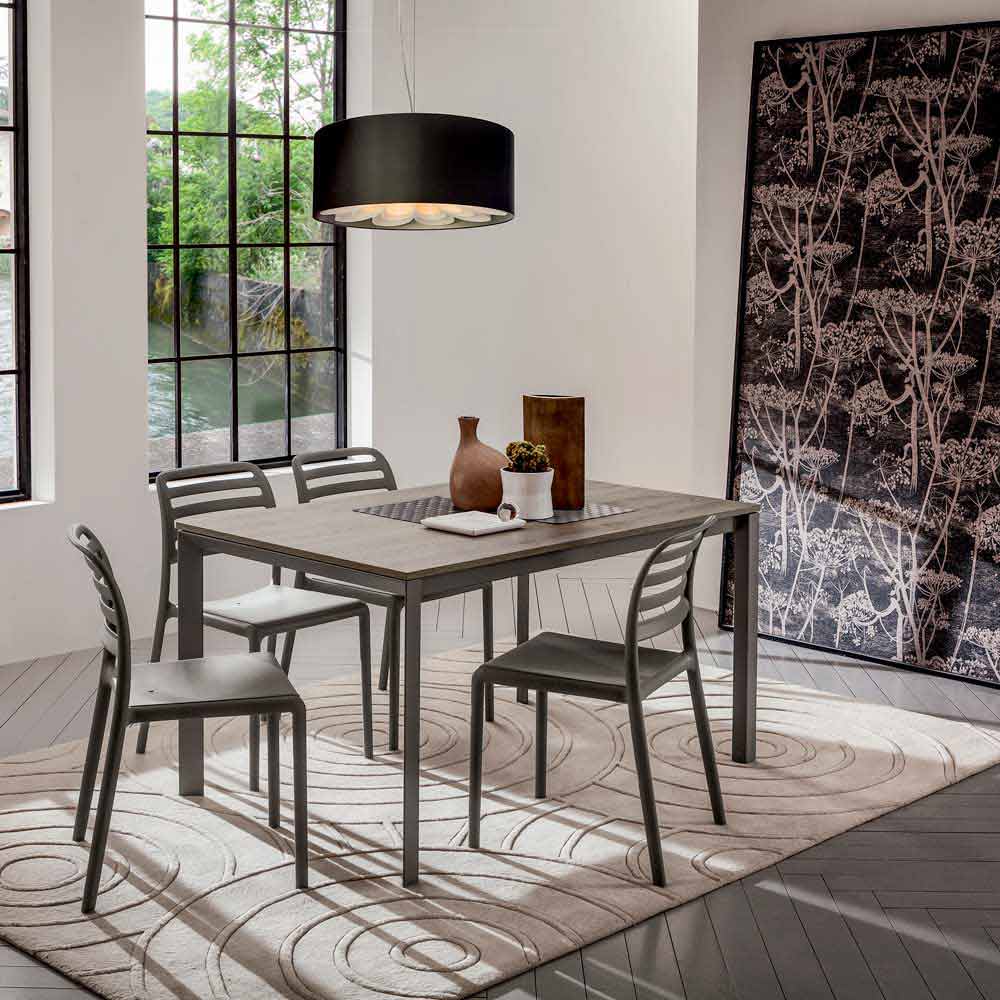 Dining table with melamine top and metal structure Made in Italy.