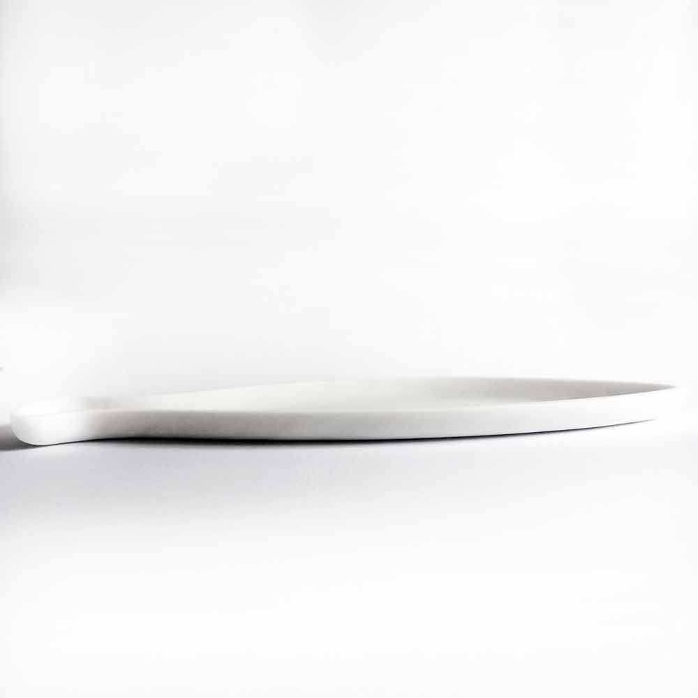 Elegant and exclusive shaped kitchen trayhandmade in Italy in white Carrara marble . An idea of class with an original shape that enriches every dining table in a refined and refined way. Ideal for serving any course during lunches and dinners with friends, its shape also makes it perfect as a practical pocket emptier to be placed at the entrance or as a simple decorative element capable of enriching any space in the house with personality.