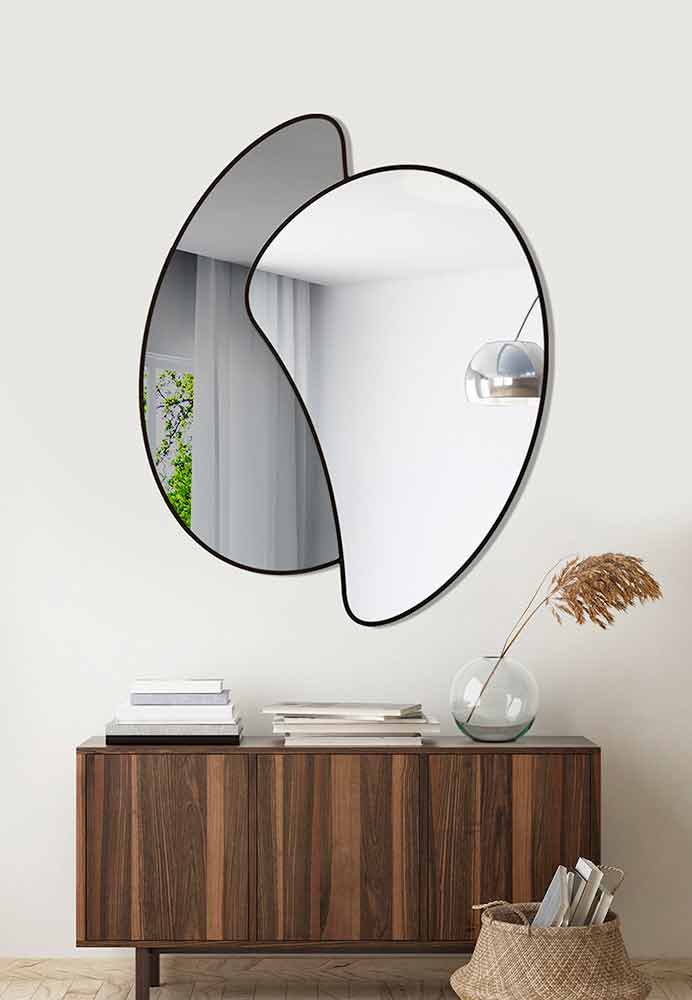 Wall mirror with frame available in different colors, modern design abstract shape made in Italy.
