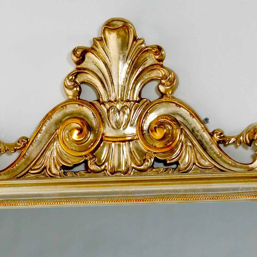 The Tiara mirror is characterized by a craftsmanship carried out using quality materials and using the experience of skilled Italian artisans. The frame is made of wood decorated with carvings. Mecca silver leaf finish. Crystal mirror, 4mm thick. Made in Italy.
