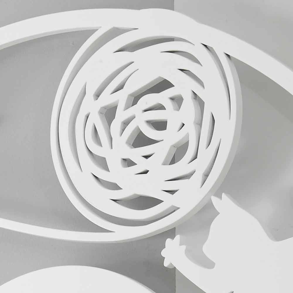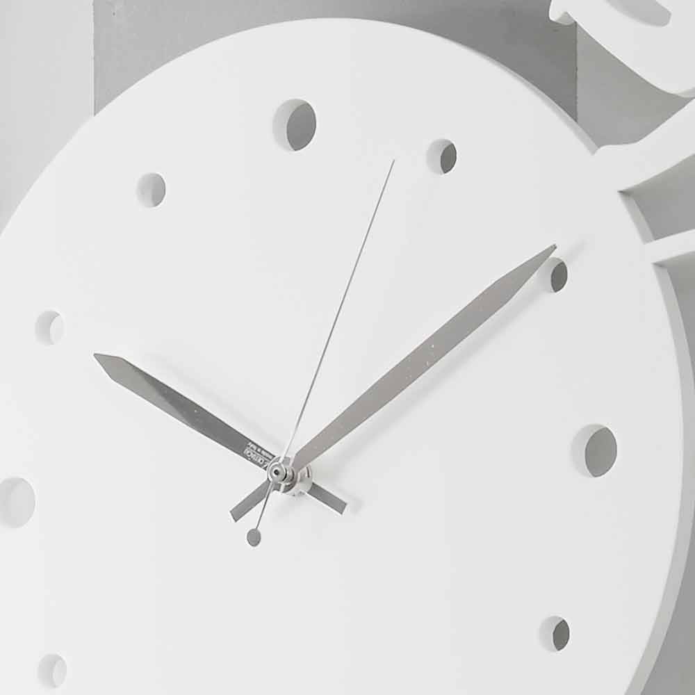 Large and original wall clock with a modern round design, in white, black or gray wood, with kittens, made in Italy.