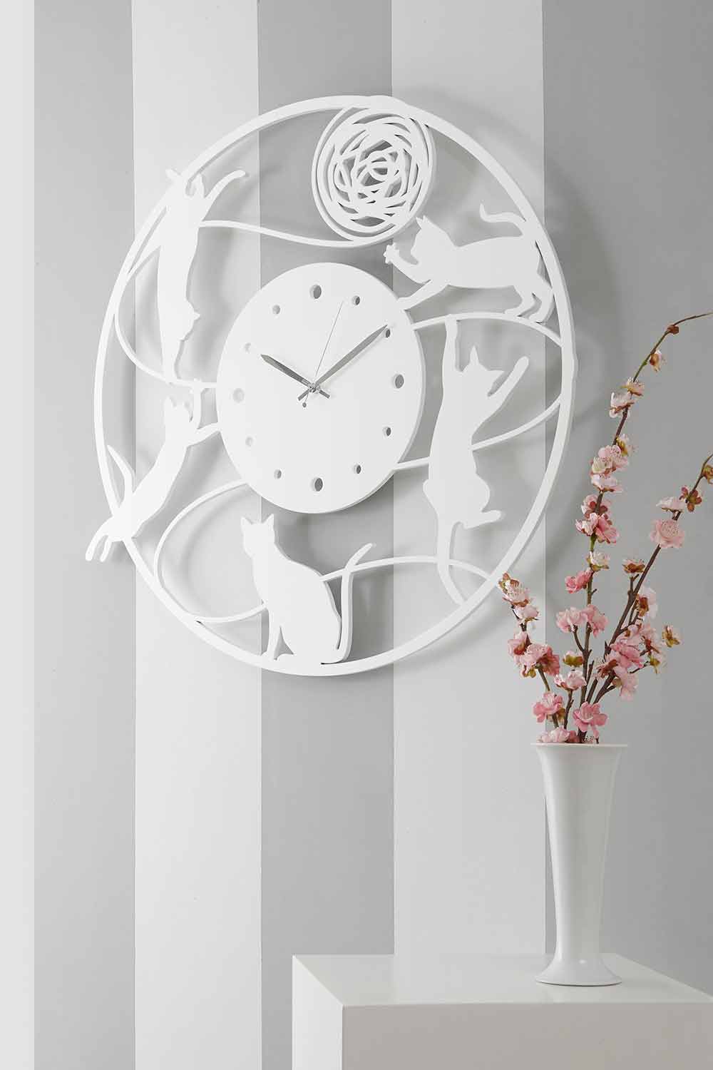 Play with your imagination and decorate the wall of the kitchen or living room in a nice way with the large round wall clock depicting cats playing with a ball of yarn.