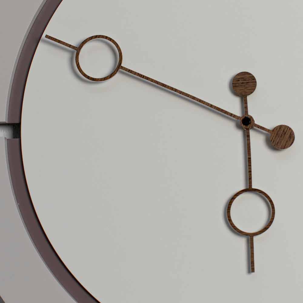 The round clock is created thanks to the combination of three shades of brown: sand, beige and cocoa, with walnut hands. Each piece is set to another to form a unique watch , through a well thought-out combination of colors and shapes.