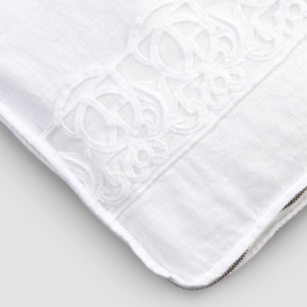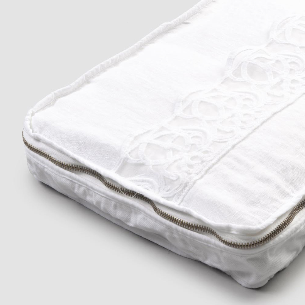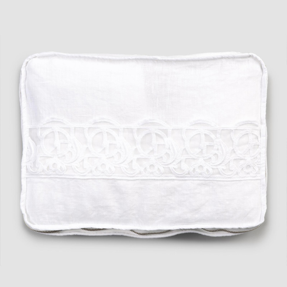 Rectangular linen and cotton cosmetic bag with zipper and synergy lace, made in Italy.