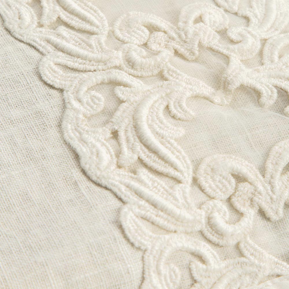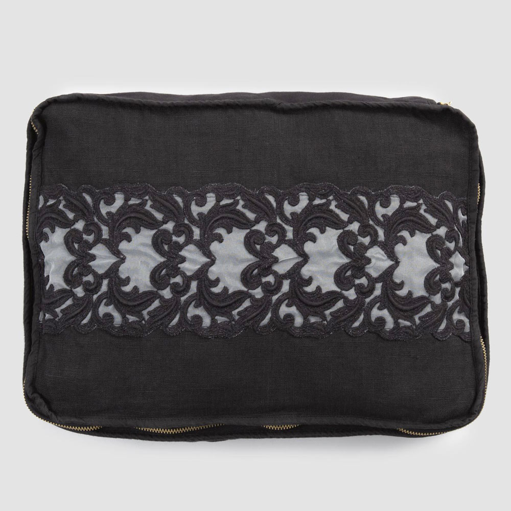 Rectangular linen and cotton cosmetic bag with zipper and Farnese lace, made in Italy.