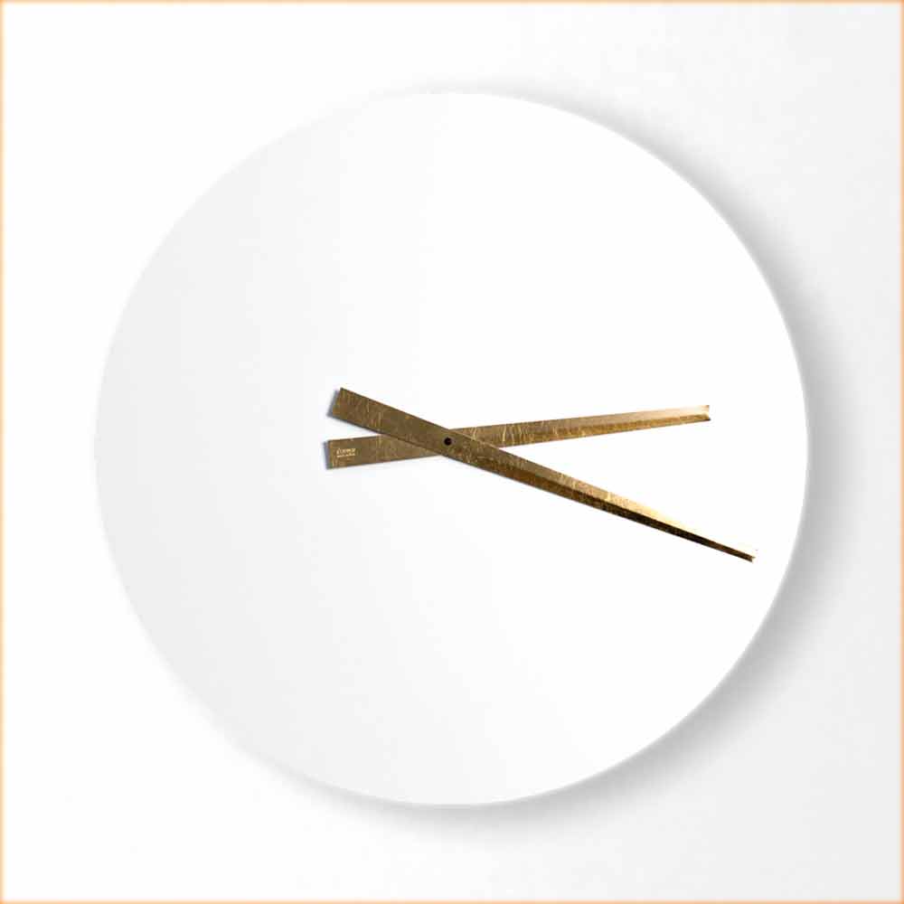 It is a minimal but brightly colored clock that lends itself to decorating different environments. The peculiarity is given by the detail of the hands , which have an original and different color compared to the base.