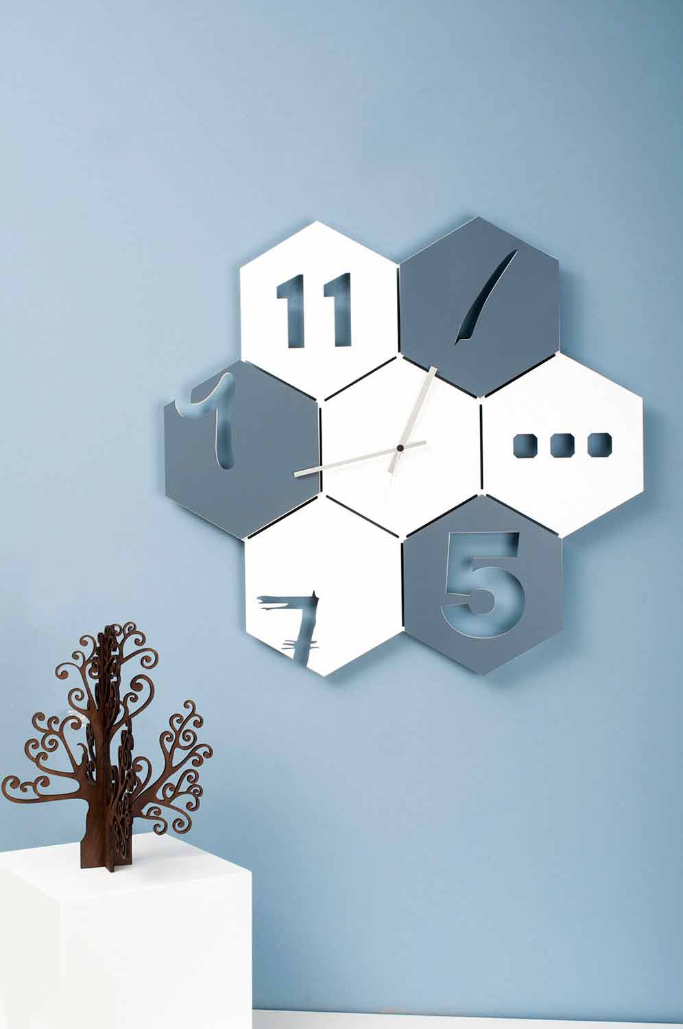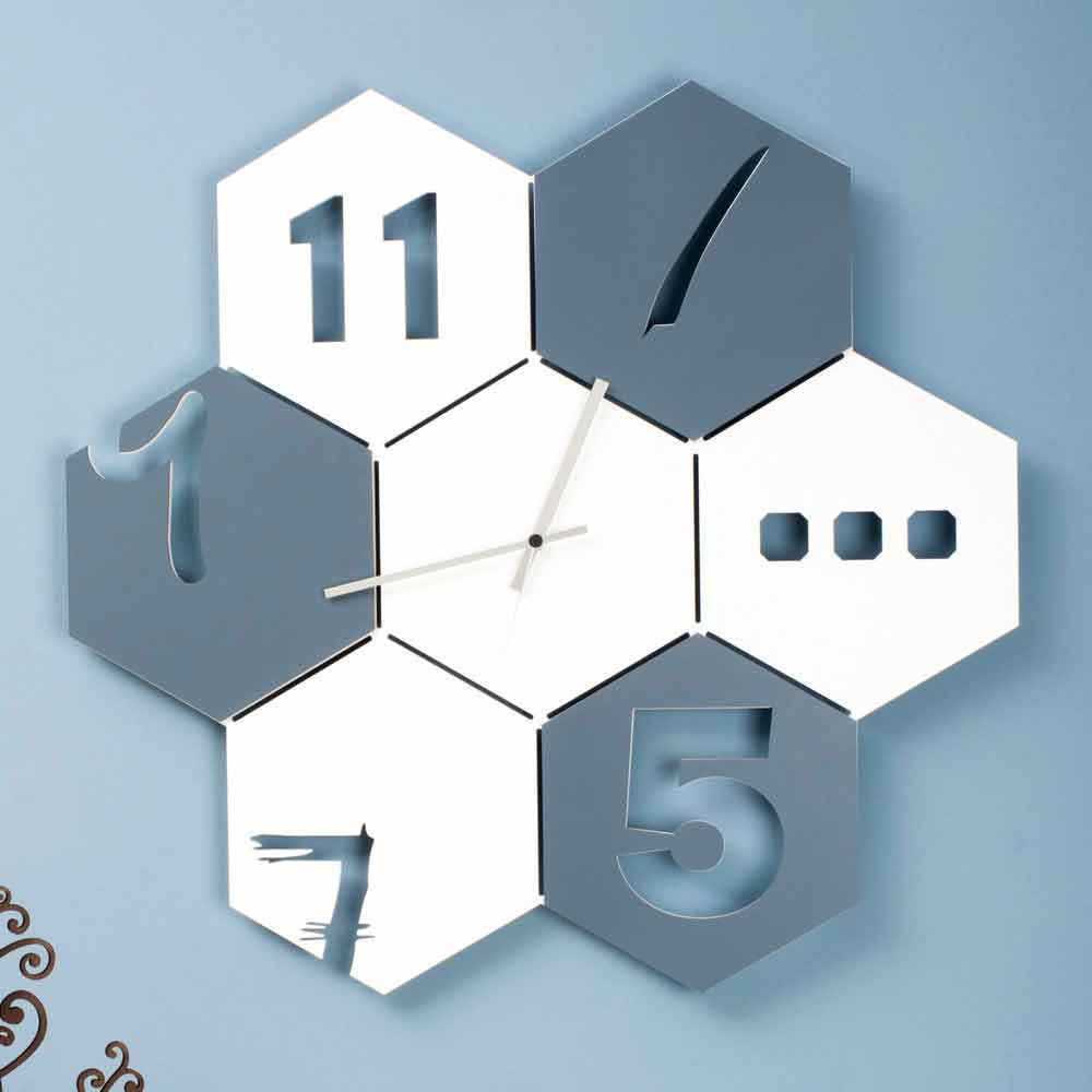 Large Wall Clock in Colored Wood Modern Hexagonal Design - Nidodape