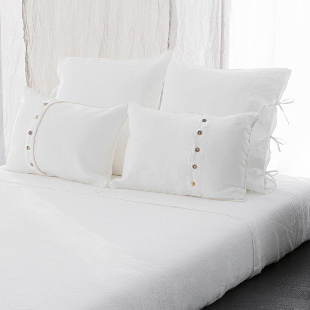 Square pillow case in linen with laces closure, 2 finishes made in Italy.