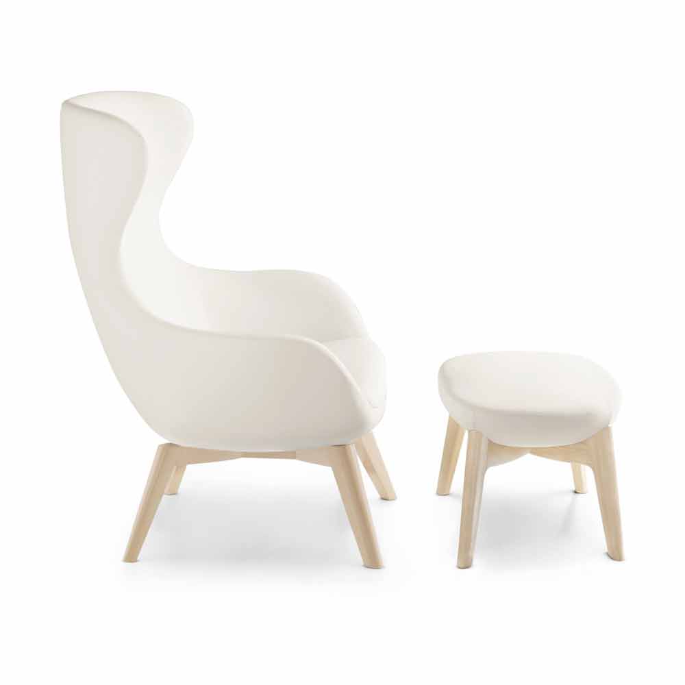 Modern living room armchair complete with footrest pouf