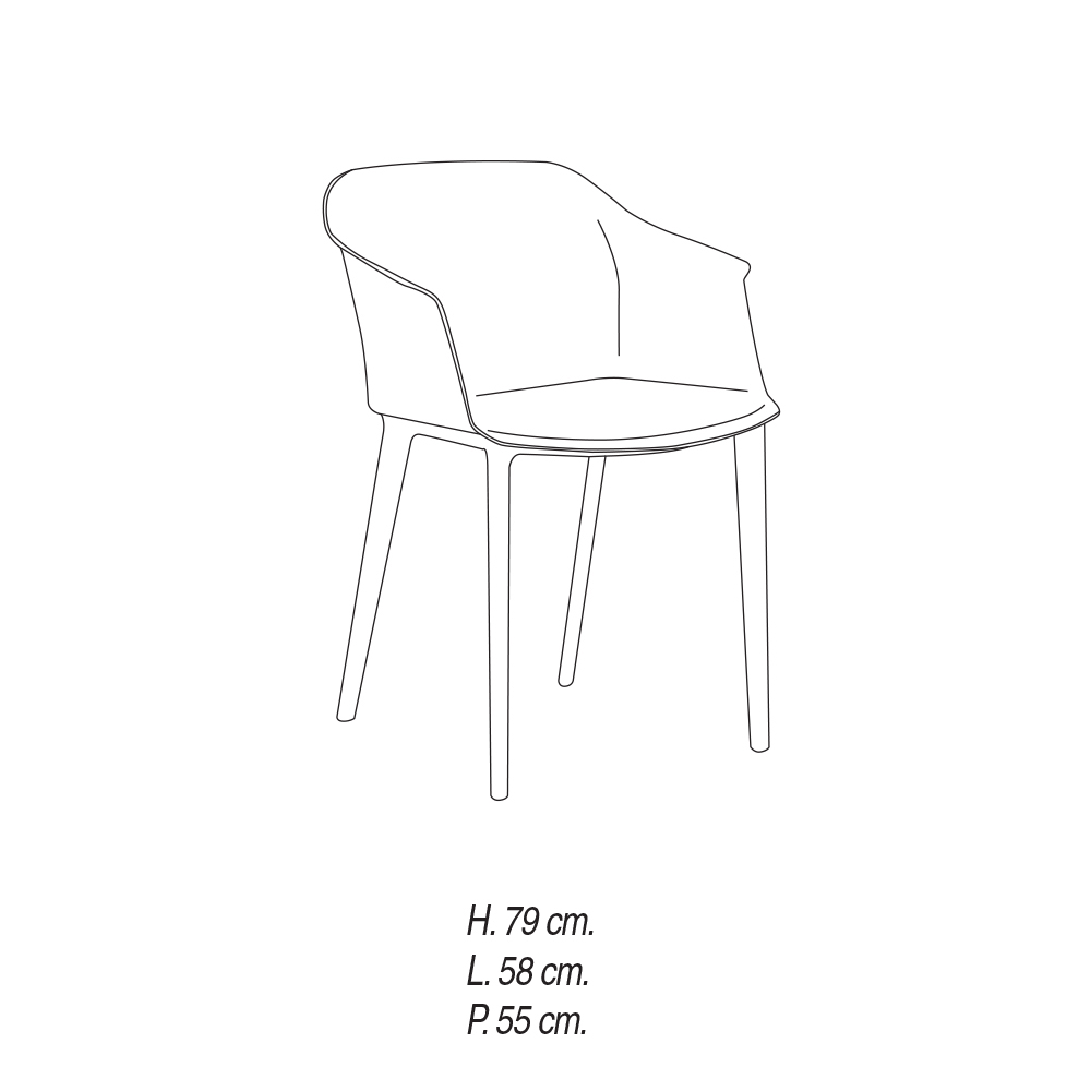 Modern living room chair entirely made in Italy in polypropylene with black legs and seat Ā available in various finishes. A product characterized by essential and sinuous lines capable of giving the environment personality and color together with excellent functionality . Thanks to the aesthetic lightness that distinguishes its design, it is able to enrich and tastefully complete domestic spaces such as dining rooms or kitchens but also contract environments such as bars and restaurants where it helps to create a welcoming atmosphere and a simple quality style .