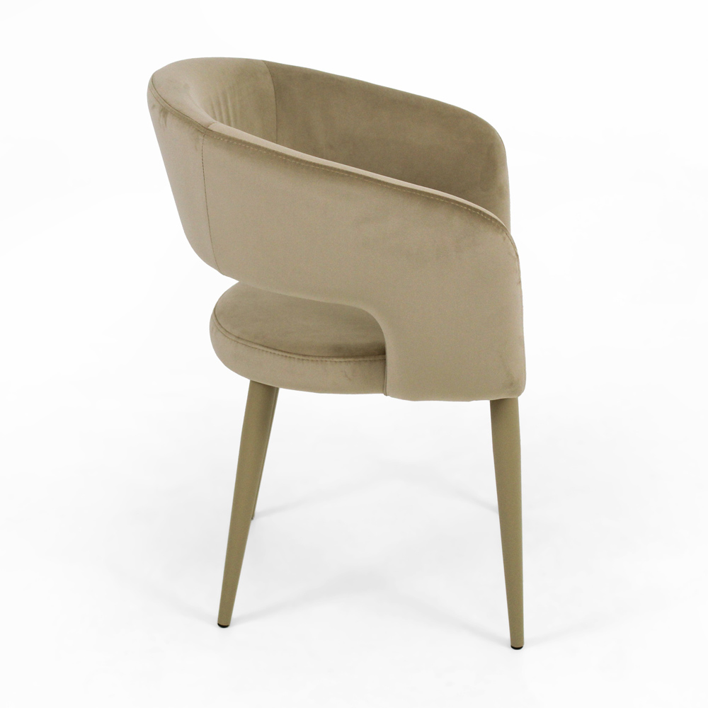 Living room chair made with steel structure completely covered in rope finish velvet and rope lacquered steel base. A furnishing accessory that easily adapts to any stylistic context in which it is inserted, helping to create a unique and classy atmosphere . The aesthetic lightness that characterizes its design makes it perfect for completing domestic spaces such as dining rooms and kitchens but also contract areas such as bars and restaurants with personality through its simple and refined shapes .