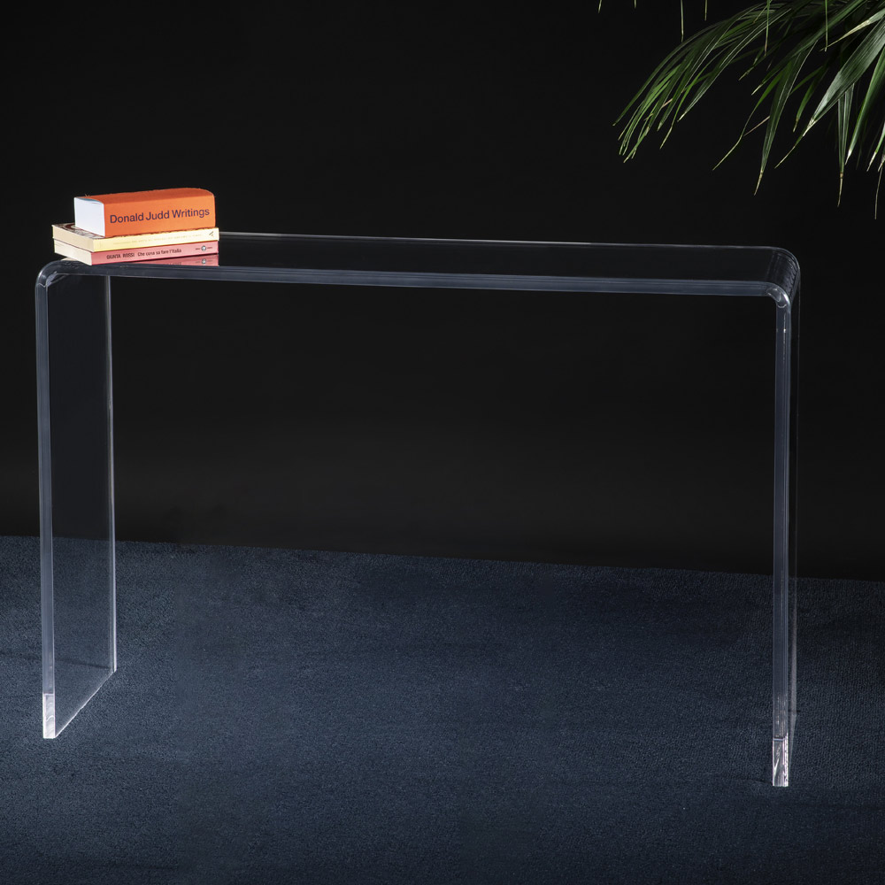 This console is made entirely of 15 mm thick transparent acrylic crystal with an essential design, ideal in classic or modern spaces. The acrylic crystal is the methacrylate polymer that is characterized by the purity of its transparency that surpasses natural crystal.