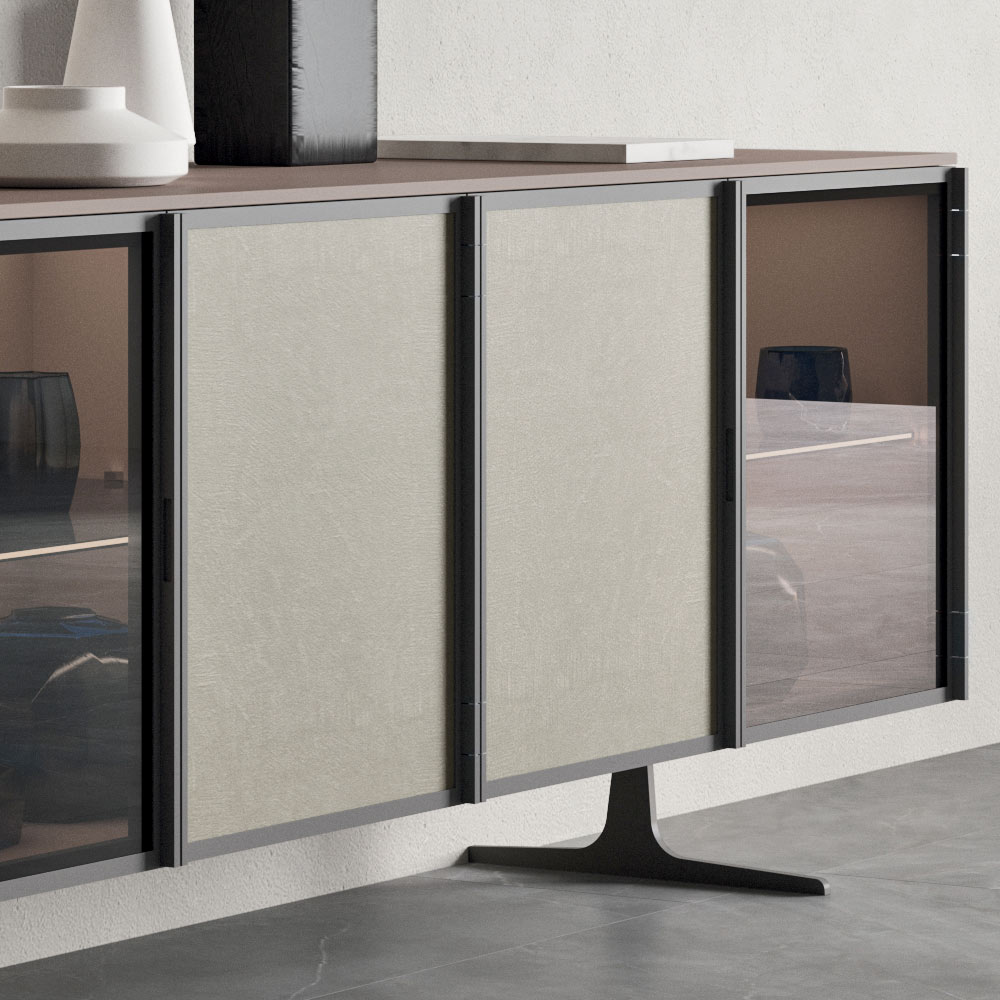 4-door sideboard for living room in ecological wood and bronzed glass, made in Italy.