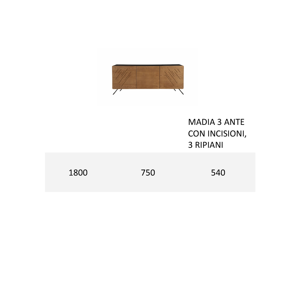 Living room sideboard with mdf shell and solid wood back, 2 or 3 doors Made in Italy.