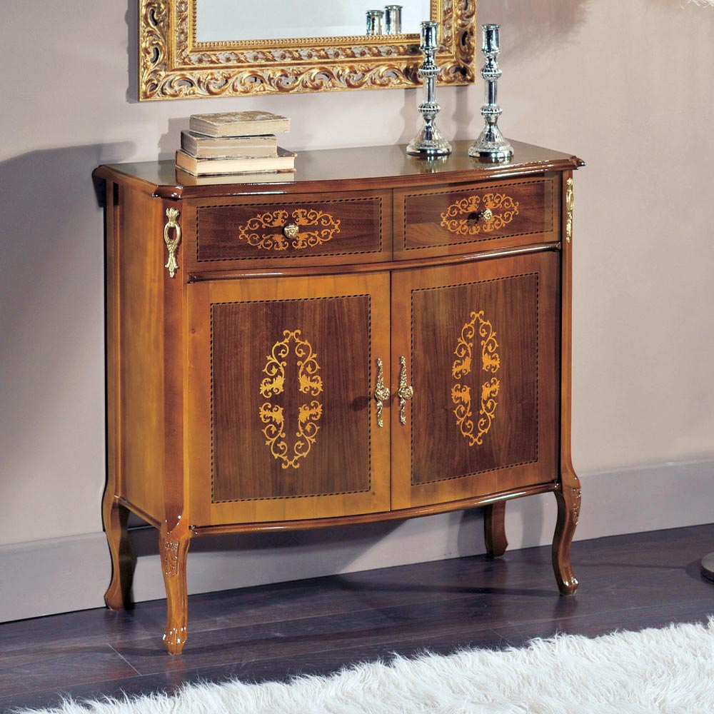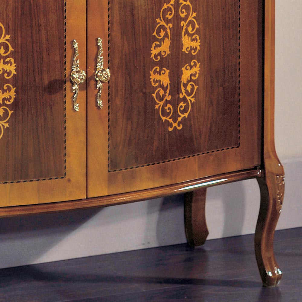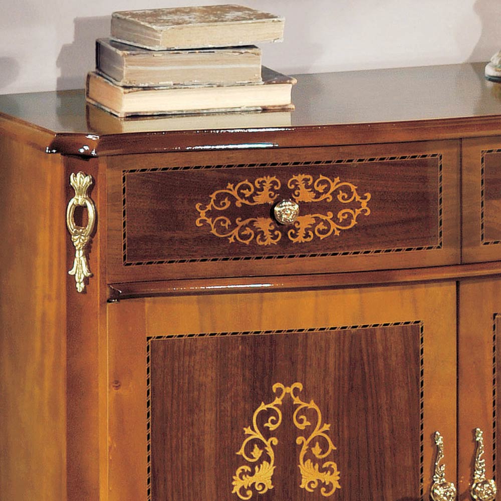 Classic styleliving room sideboard made of wood in glossy walnut or white and gold finishes. Available in the version with 2 doors and 1 drawer or 3 doors and 3 drawers. Unique and refined, it is completely made in Italy and handcrafted by skilled master craftsmen , finished with wisdom and taste for elegance. The production is carried out using fine materials , and performing the workbyhand with the utmost care and professionalism that distinguishes Made in Italy products.