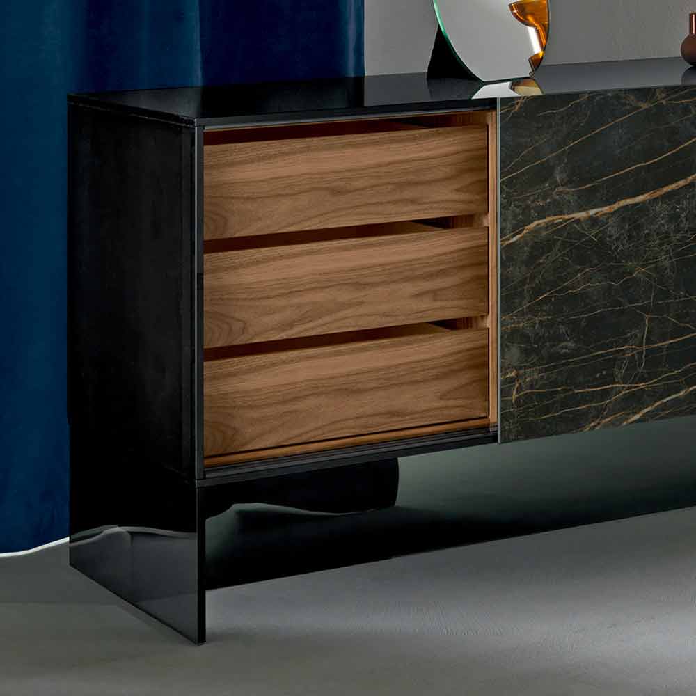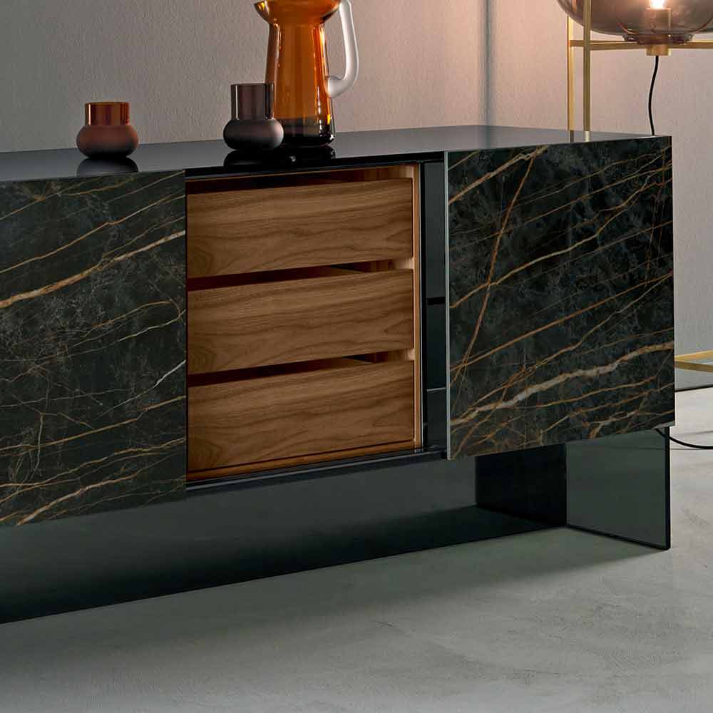 The living room sideboard Scocca is realized by hand in Italy with high-quality materials.