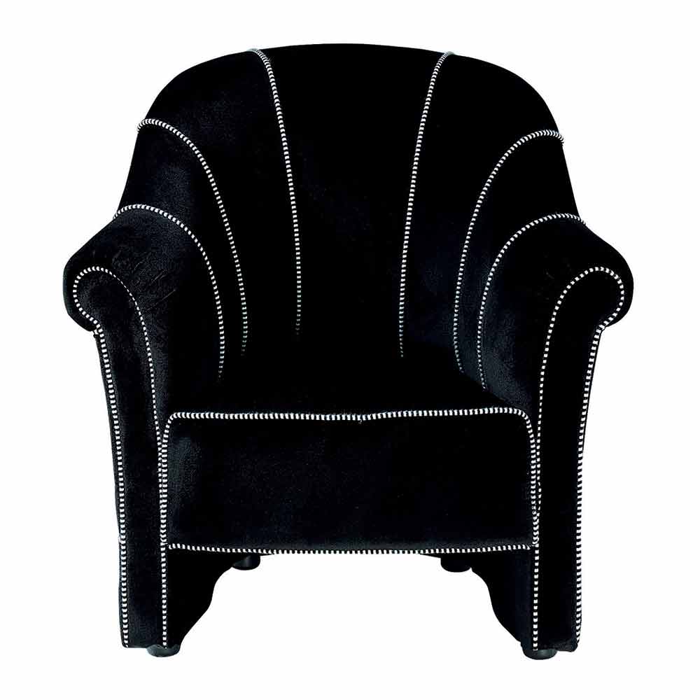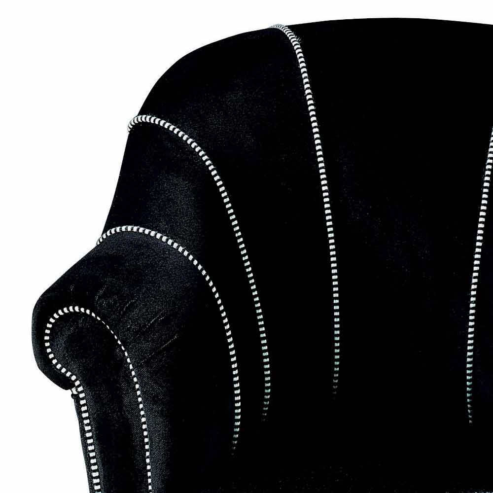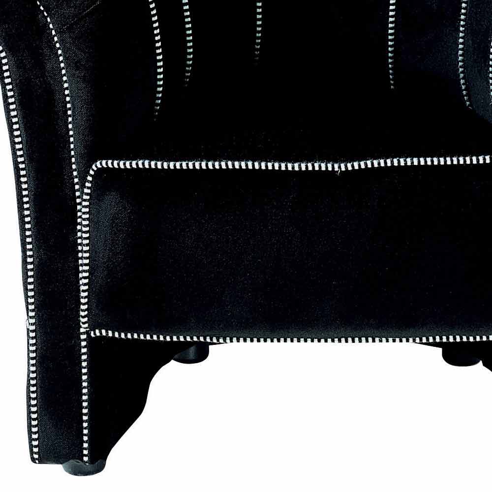 Living room armchair with internal wooden structure covered in polyurethane foam and polyester fiber lining, external covering in black velvet with black and white trimmings ( not removable ). Made through a 100% Made in Italy production , this armchair has a particularly simple and versatile shape that easily adapts to any modern living area thanks to a sober design and essential shapes . To enrich the aesthetics are the contrasting seams that underline the fundamental features of the armchair, giving a sense of refinement and innovation for a cutting-edge result. Ideal for those who love an elegant furnishing style, this furnishing solution also features a velvet covering, a material that maximizes its comfort even to the touch. The materials chosen and used for the realization of this complement also allow to obtain a particularly welcoming seat, therefore ideal for spending wonderful moments dedicated to relaxation in your living room.