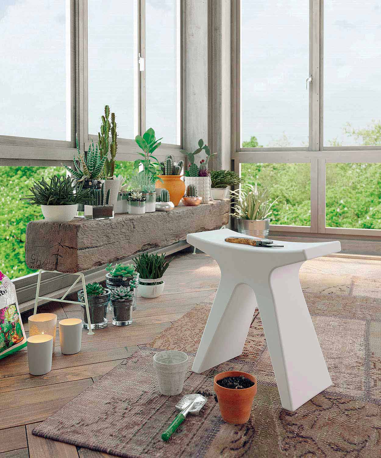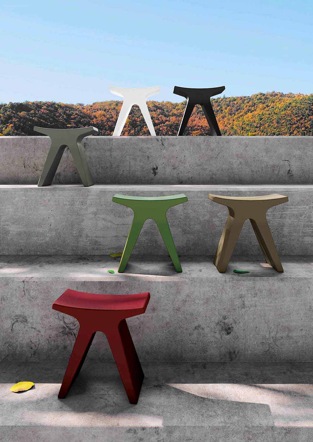 Prue is a fun and functional outdoor low stool characterized by a unique and minimal design but at the same time also elegant and classy, performing not only a practical but also aesthetic function for all environments, domestic and public. Prue is entirely made of high quality polypropylene and is available in 6 color variations.