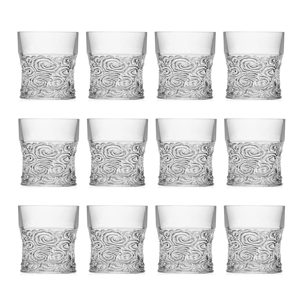 Double old fashioned glasses in eco crystal with round decoration 12 pieces made in Italy.